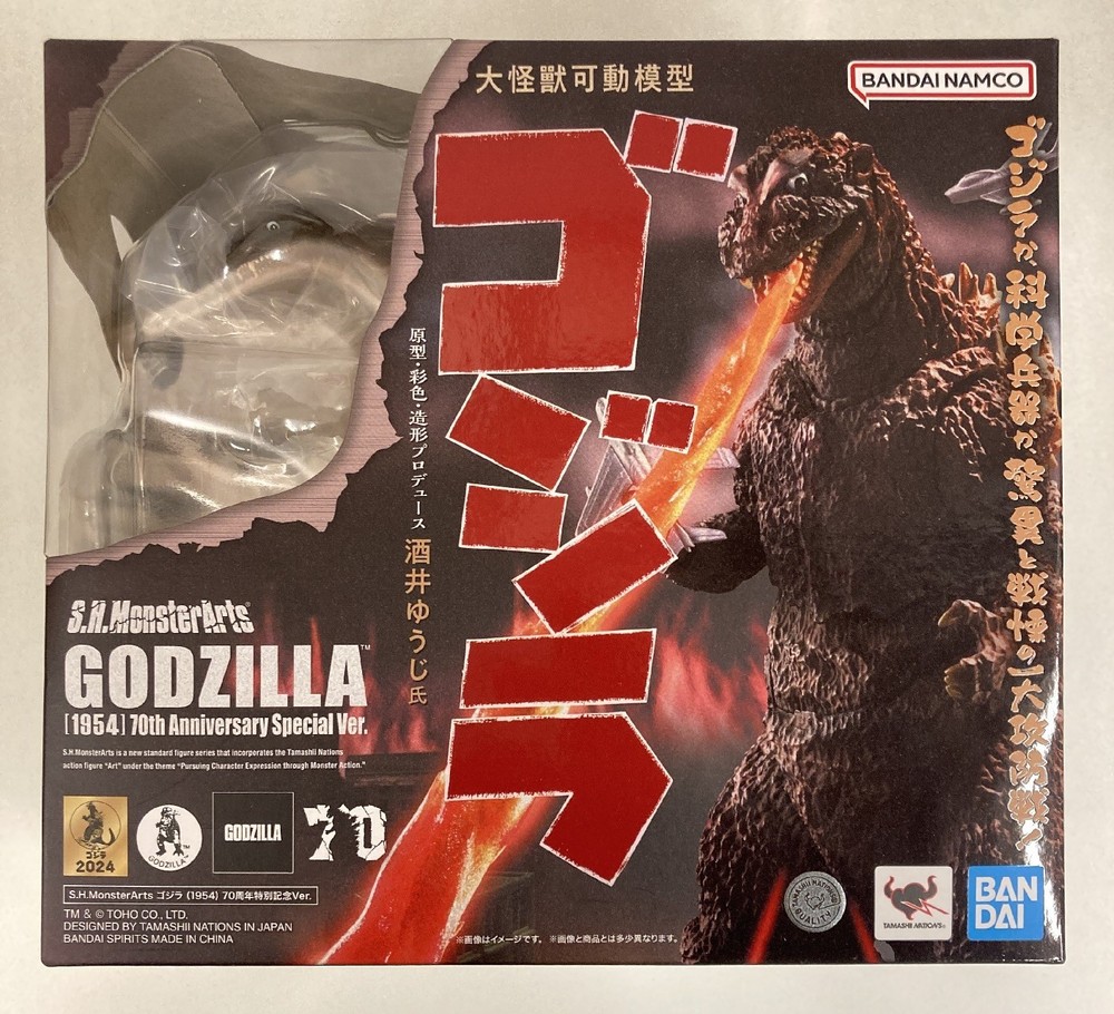 Title バンダイ S.H.MonsterArts ゴジラ (1954) 70周年特別記念Ver. Brand バンダイ Series S.H.MonsterArts Item Name ゴジラ Item Condition 未開封 パッケージいたみ SKU nitem-00L6U2HC UPC 4573102662415 Size Approx 8.27 x 9.06 x 5.91in (210 x 230 x 150mm) Weight Approx 22.22oz (1.389lb 630g) Import duties, taxes, and charges are not included in the item price or shipping charges. These are the responsibility of the buyer and are usually charged when the item is delivered if applicable. Please check with the customs office in your country for information about possible costs and charges. If you are eligible for free shipping, please note that taxes are not included (please do not confuse this with the domestic sales tax that eBay may charge). Please be sure to read all contents before purchasing. By placing an order with us you agree that you have read, understood, and agree everything below. While we aim to respond to inquiries within 1 to 3 working days, please be aware that there are times it may take longer. As our automated shipping process starts immediately once an order is paid for, this means that cancellation and other such requests may not be possible. Please do not place an order unless you are happy with the item. Everything that is included with this item is shown as shown in the pictures and described (as we may have more than one of this item in stock, the item shown in the pictures may not be the exact item shipped). If this item originally came with anything that is not shown in the pictures (cases, bonuses etc), then they are not included with in this listing . Please keep in mind that altho very rare, due to a data transfer delay between eBay and our warehouse, some items should have been removed from Mandarake's eBay listing. There will be times when we have to cancel an order due to this data transfer delay. Mandarake is now on eBay! Now you can find our wonderful selection of books, toys and figures from anime, manga, games, cards, cosplay goods, j-pop goods and other Japanese popular culture and more right here! We also have our fantastic dolls and old-school toys too. All of our items are shipped straight from our warehouse in Katori, Japan to your door! Check out our other eBay listings here! General Conditions Since all of our items are second hand, they may have slight signs of damage, such as minor scratches. If the item has noteworthy damage it will be mentioned above. Please note that items with clear cases are likely to have discoloration that is not clear in the pictures. Everything that is included with this item is shown as shown in the pictures and described (as we may have more than one of this item in stock, the item shown in the pictures may not be the exact item shipped). If the item originally came with anything that is not shown in the pictures (cases, bonuses etc), then they are not included with in this listing . Please note that some product boxes may show other items from the same series, but they are not included unless otherwise noted. Condition Rating Details: 10-point Scale (10) Mint / Like New (9) Excellent to Near Mint / Very good condition for a used item (8) Great / Relatively good condition for a used item (7) Good / Average condition for a used item, with some minor damage (6-5) Average / Decent. Contains damage from external factors like fading, yellowing, stains, wear. (4-3) Fair/ Acceptable. Noticeable damage, including, tears, missing or damaged parts, discoloration, and wear. Suitable for enjoying as an item but not for collection. Some integral extras may be missing. (2-1) Mediocre / Poor. Not for collectors, As is. The severity of damage decreases as the score decreases, which is reflected in the price. Evaluation criteria may vary depending on the publication date, book binding, and characteristics. Actual product condition may differ slightly from the images. Regarding first editions, reprints, and the presence of dust jackets, this information is stated in the title or product description. If not specified, these details cannot be selected. Please refer to the product details section for information on included accessories. Please Keep the following in mind Items are not hand-signed unless specifically mentioned. Items that are 'Motor Powered' may not include a motor. Items that are noted as unopened/resealed have not had their condition checked beyond what we can see from outside as we cannot open the package. The size displayed on the listing includes the package of the item and is not the dimension for the item itself. If the item is inside a plastic bag, the dimensions displayed on the listing are the dimensions of the bag flattened out. Unopened items are sold as is, and cannot be returned as faulty if you open the package (you will need to contact the manufacturer for assistance). We cannot be held responsible if an unopened item is opened by your local customs office. Unopened items, especially old electronics, may no longer be working and are sold as not working. Some items, such as books, may be shown in the pictures as wrapped. This is to protect them while they are in the warehouse, they are not brand new unless specifically mentioned. Please assume all items are in Japanese if not specifically stated as so. This includes Books, DVDs, and any other item that may be Language dependent. Conditions (More Information) Sometimes items have single word descriptions for their conditions. Please use the following guide for more information on item conditions. Unopened / Not Opened - The item is still sealed, the contents are unused. Please note that we have not checked the condition beyond what we can see from outside as we cannot open the package. Unopened items are sold as is, and cannot be returned if they are faulty if you open the package. We cannot be held responsible if an unopened item is opened by your local customs office. Box Resealed - The item has been opened by the manufacturer (usual