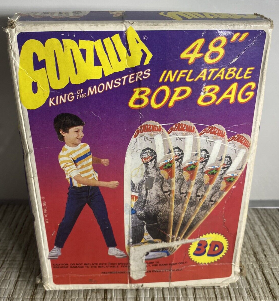 1985 Godzilla Bop Bag Toho Co 48" Inflatable (good condition) In Original Box(heavy/lots of storage/handling wear...