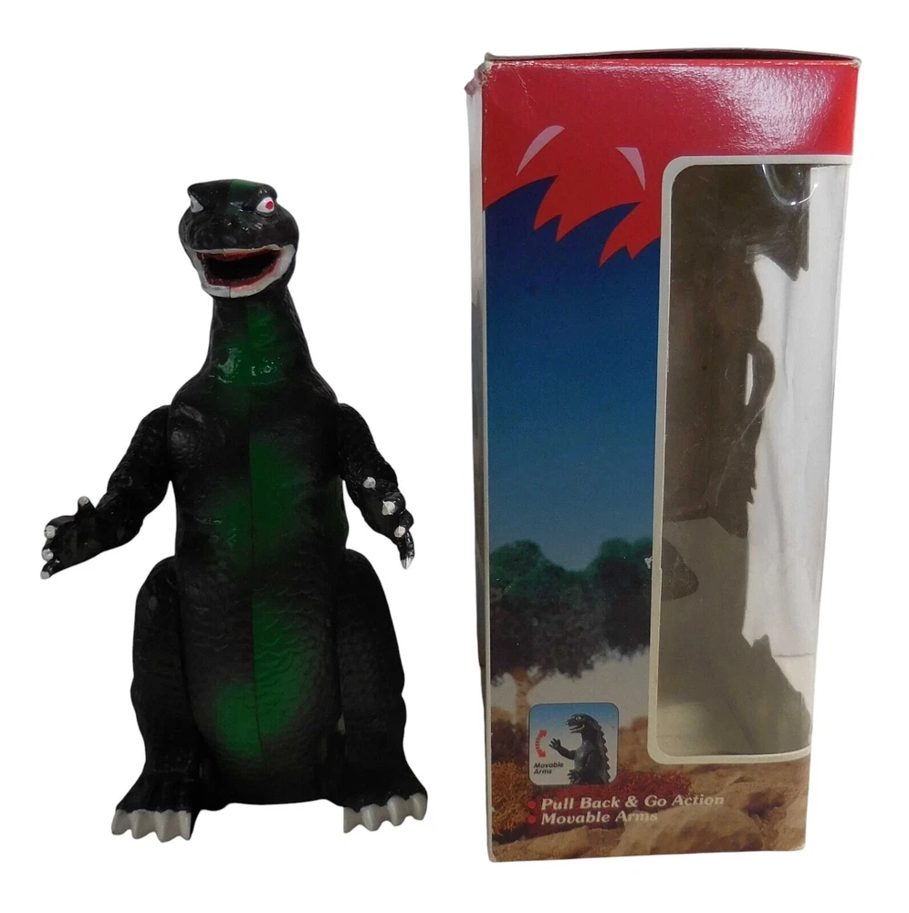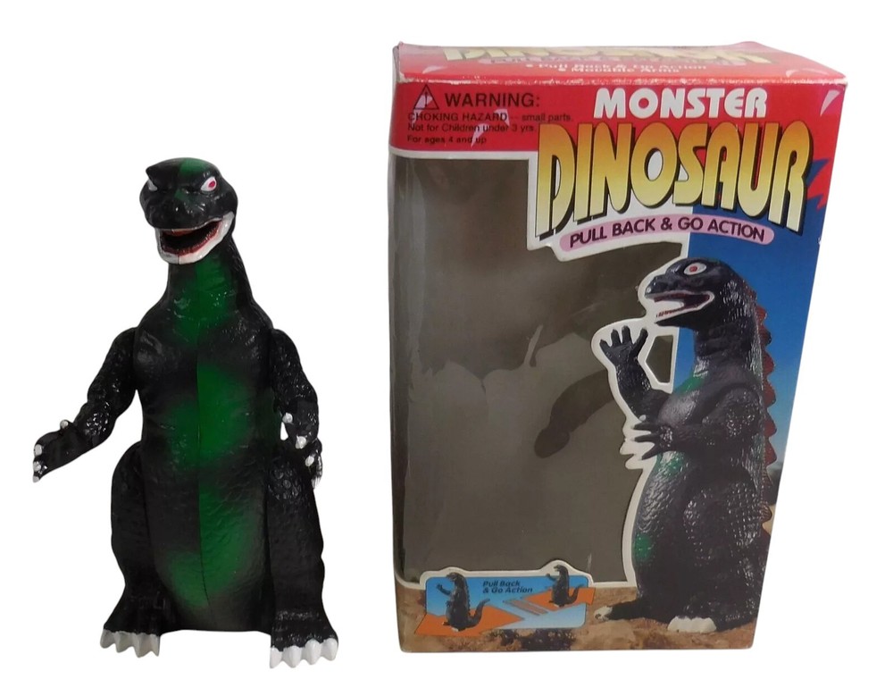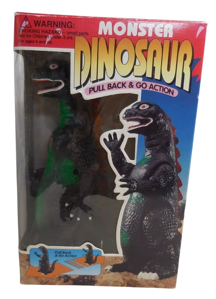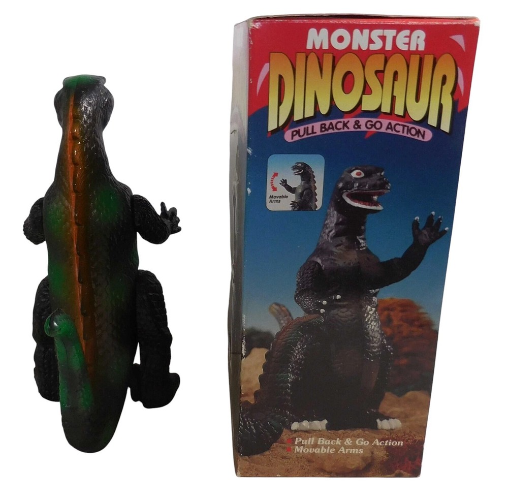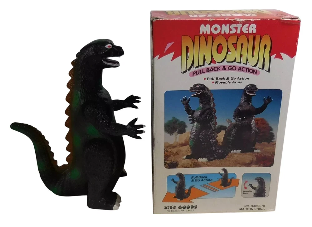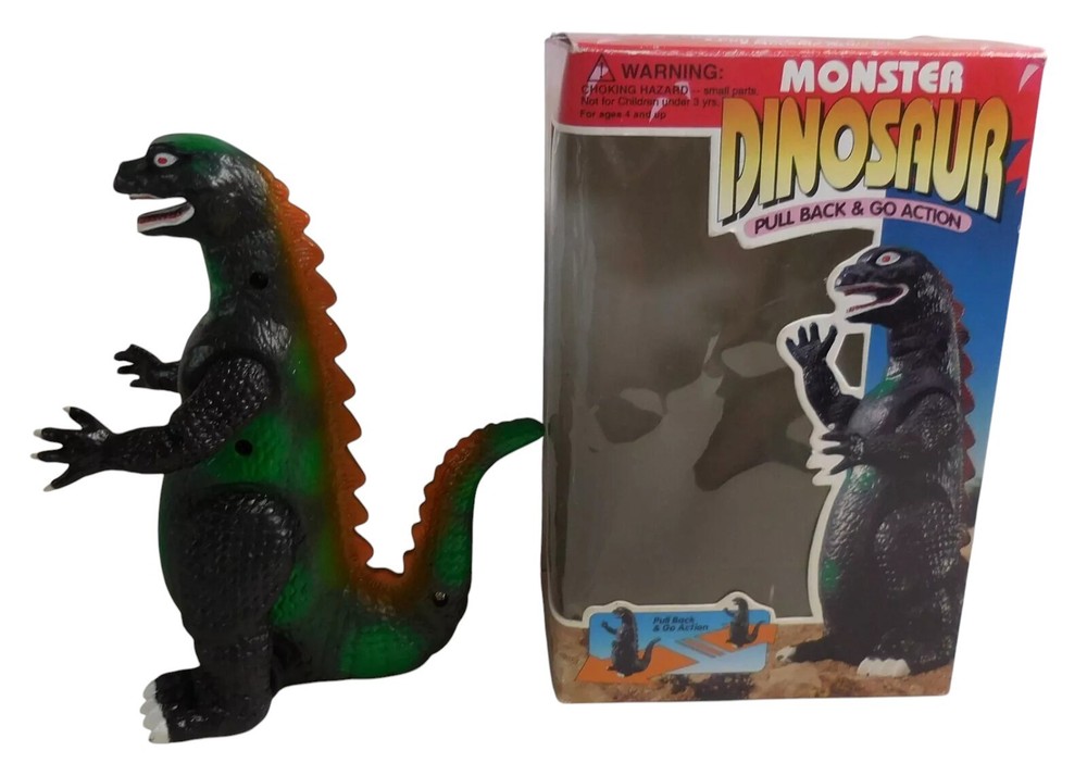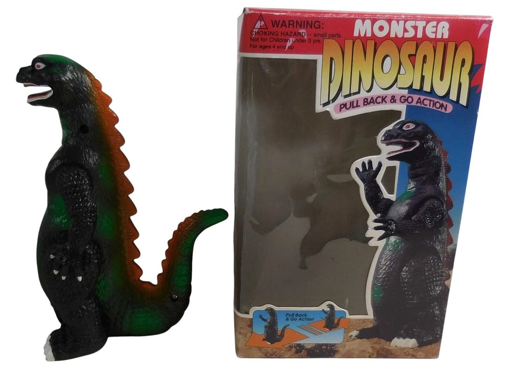 Description & Condition: You are purchasing: Vintage 1990's GODZILL Kid's Play No. 94068PB MONSTER DINOSAUR PULL BACK AND GO ACTION with MOVABLE ARMS 7 " Figure WITH ORIGINAL BOX. Pull the figure back and watch him go! The item has been tested and works perfectly fine. I don't think the item was played with much - it's very clean. The box has vibrant colors and some overall wear. I sell all my items "AS IS" so PLEASE USE THE SCANS TO BEST JUDGE THE CONDITION - I'LL LEAVE THAT UP TO YOU = THE BUYER. All of my collectibles come from a SMOKE-FREE home and will be shipped securely. CHECK OUT MY EBAY STORE FOR MORE COLLECTIBLE S !