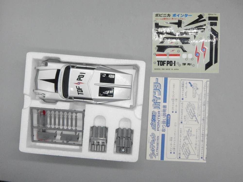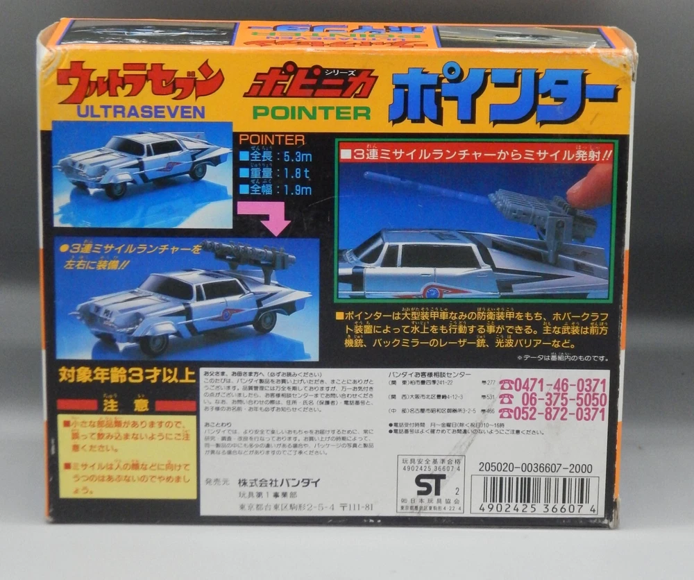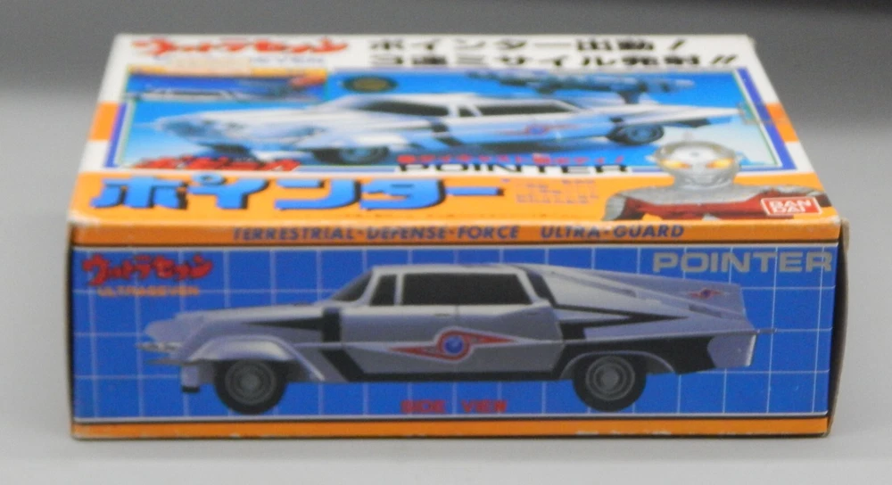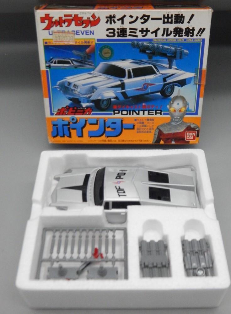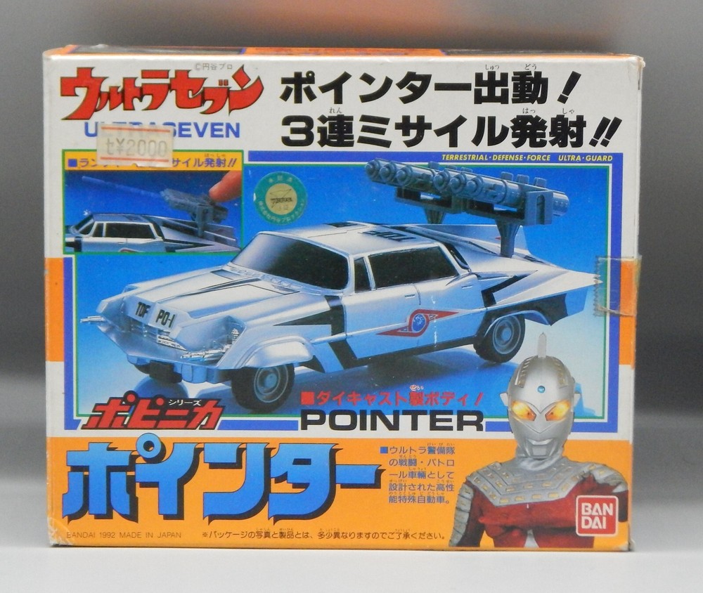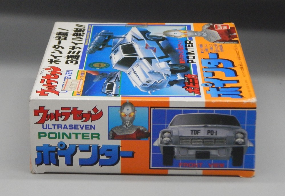 Vintage 1992 Japanese Bandai Ultraman Ultra 7 Pointer car COMPLETE with box! The diecast vehicle is based on the 1958 Chrysler Imperial and features awesome details to match the onscreen prop! chogokin car features UNUSED missiles still on the sprue, as well as an UNUSED sticker sheet. The box displays well, however has some wear on the corners, as well as some discolored tape. Overall a great addition to any Tokusatsu, Ultrman, or Chrysler collection! See pics for details. Check our other auctions for similar items & to save on shipping. All items are sold as-is and we do not accept returns, so please ask any questions you may have before bidding. ZERO FEEDBACK or other questionable bidders, please email to obtain permission to participate in our auctions BEFORE bidding. Please feel free to stop by our RETAIL LOCATION to view items in person.