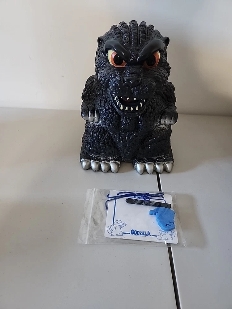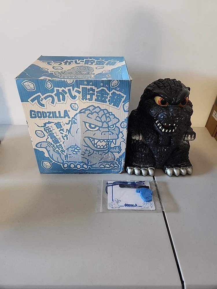 This Yutaka 1994 Godzilla Big Money Coin Bank is a must-have for any Godzilla fan or collector. It features the iconic image of the famous monster, and is made by Takara, a reputable brand in the industry. The coin bank is from 1994, the same year as the first Godzilla movie, making it a special piece for any fan. The Godzilla Big Money Coin Bank Yutaka is perfect for storing your spare change or as a decorative piece on your shelf. Its unique design is sure to catch the eye of any Godzilla enthusiast. Add this to your collection today and show off your love for the King of Monsters. Thank you for viewing our listing. Item specific is listed below. · If there is a problem with your purchase, please contact us first to allow us to correct the issue before leaving feedback. · We DO NOT offer partial refunds for products bought from us. We ask you submit via eBay to get a full refund. · If your item was damaged during shipping, take pictures of the box before opening; packing material and of the item will help with the claim process. · Most items will be shipped via USPS. Heavy & bulky items will be shipped via UPS or FedEx. · Scuffs and scratches on the case. · Items is a Japan import