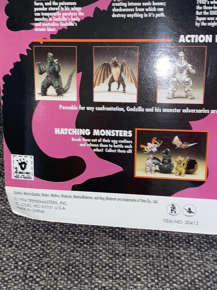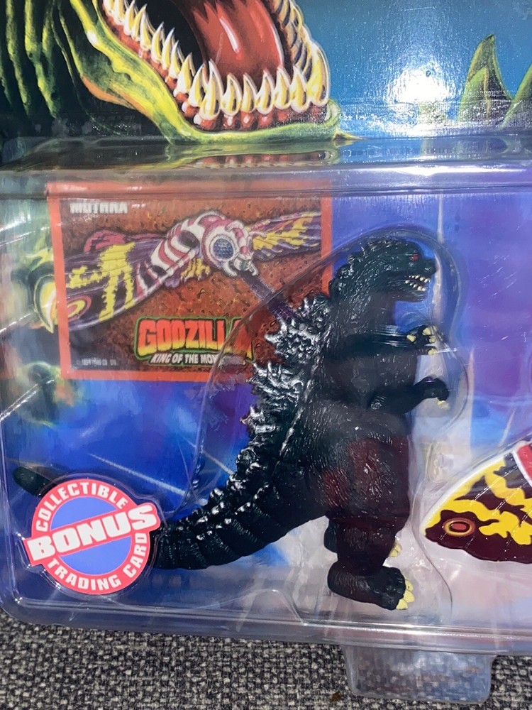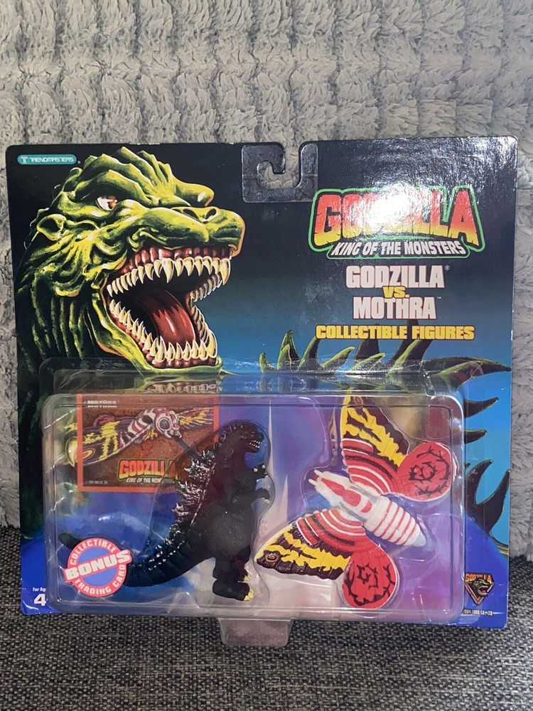 Bring home the epic battle of Godzilla vs Mothra with this 1994 Trendmasters collectible figures set. Celebrate the 90s classic with this 4" plastic action figures of the King of Monsters. The set features iconic characters from the movie franchise, including Godzilla and Mothra. The original packaging remains unopened, making this a must-have for collectors and fans alike. Get your hands on this rare piece of merchandise and relive the thrill of the epic battle between Godzilla and Mothra. Add it to your collection today!