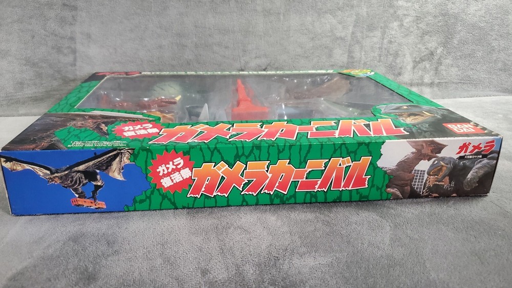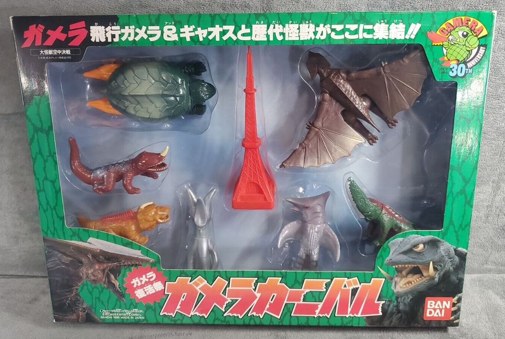 This is the Gamera Carnival mini vinyl figure set by Bandai Japan. From Gamera: Guardian of the Universe (1995) and prior Showa Gamera films . Barugon, Guiron, Jiger, Viras, Zigra, Gamera (1995) and Super Gyaos are included along with Tokyo Tower. Condition is "New". Please examine photos for condition of box. Shipping options are USPS Ground Advantage.