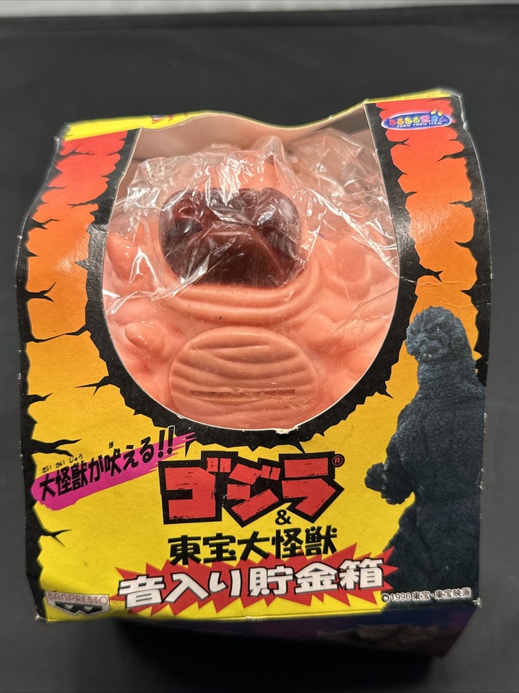 1996 BANPRESTO MOTHRA LARVA Sound Vinyl Coin Bank Money Box Figure GODZILLA. New in bag, not sure if it still works. It’s 28 years old so it’s sold as is. Box has some wear.