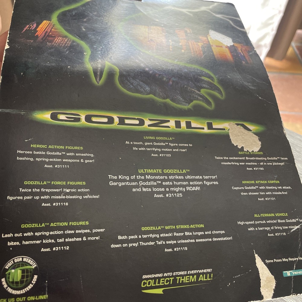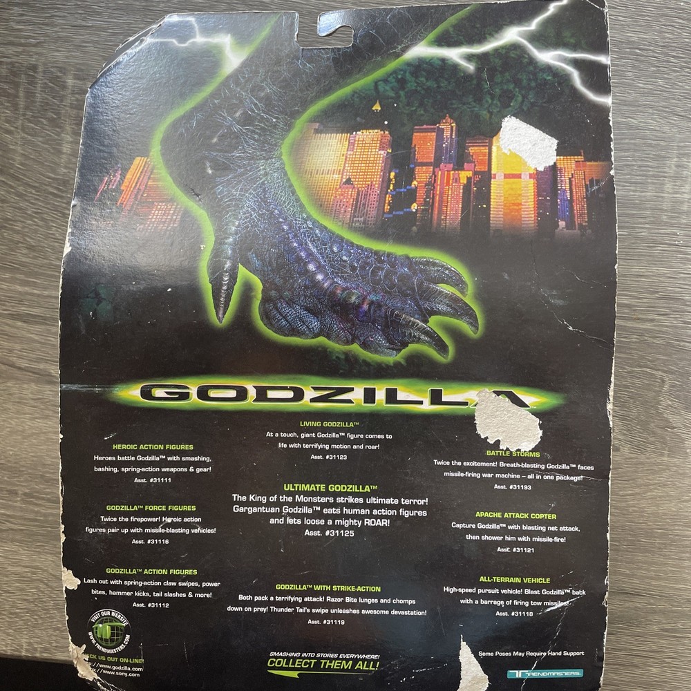 The 1998 Vintage Trendmasters Godzilla Claw Slasher Action Figure #08528 is a collectible toy based on the Godzilla franchise. This action figure features the character Claw Slasher in a multicolor design, made of mixed materials. Packaged and boxed, this vintage toy from the 1990s embodies the theme of movies and is an original licensed reproduction by Trendmasters. With its dinosaur-like animal species and tie-in to the Godzilla TV show, this action figure appeals to fans of the iconic monster.