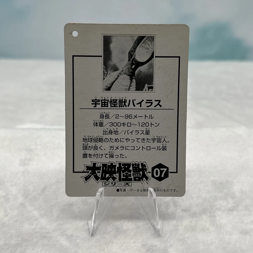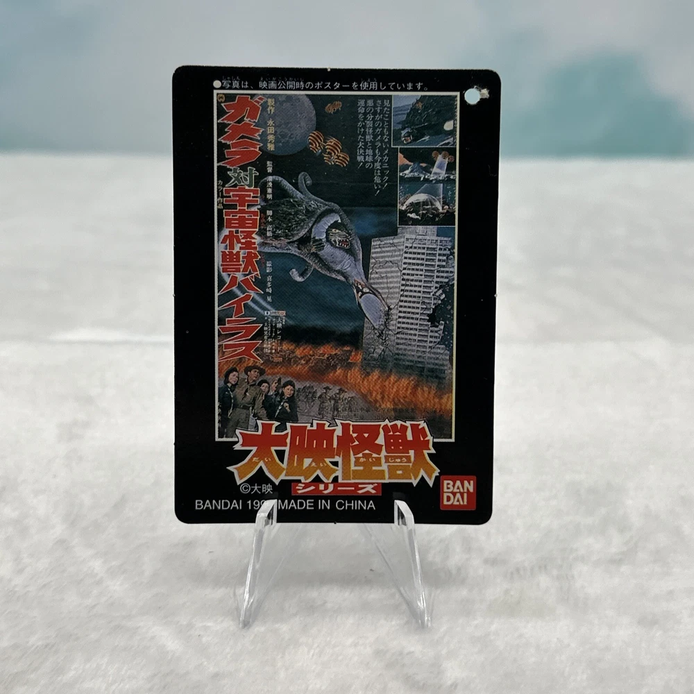 This is a rare and highly collectible 1999 Bandai Viras vinyl figure from the Gamera Memorial Box series. The intricate details and craftsmanship of this figure are impressive, making it a must-have for any fan of the Gamera franchise. Made in Japan, this figure boasts excellent quality and durability that will stand the test of time. This 6" scale figure is perfect for display or play, and comes with a card that showcases its unique features and highlights its place in the Gamera universe. Don't miss out on the opportunity to add this impressive Bandai Viras vinyl figure to your collection today.