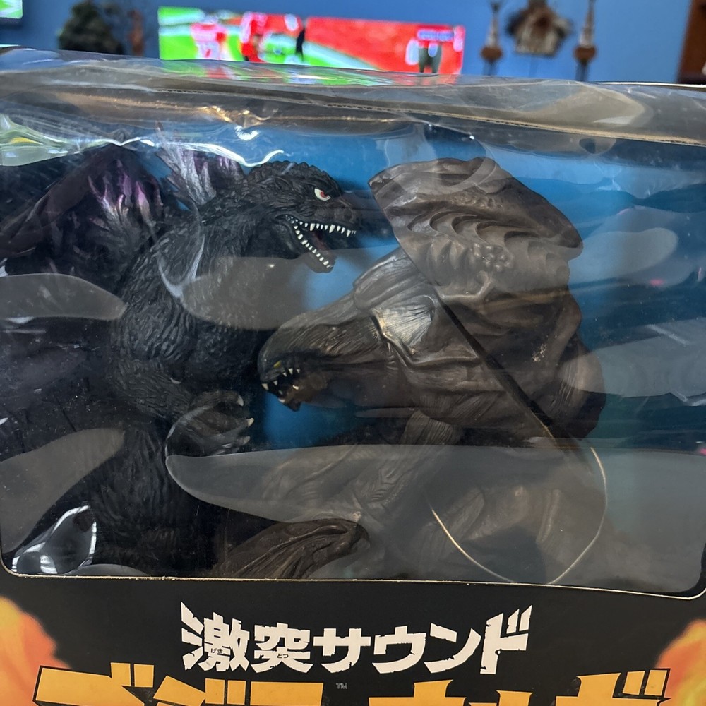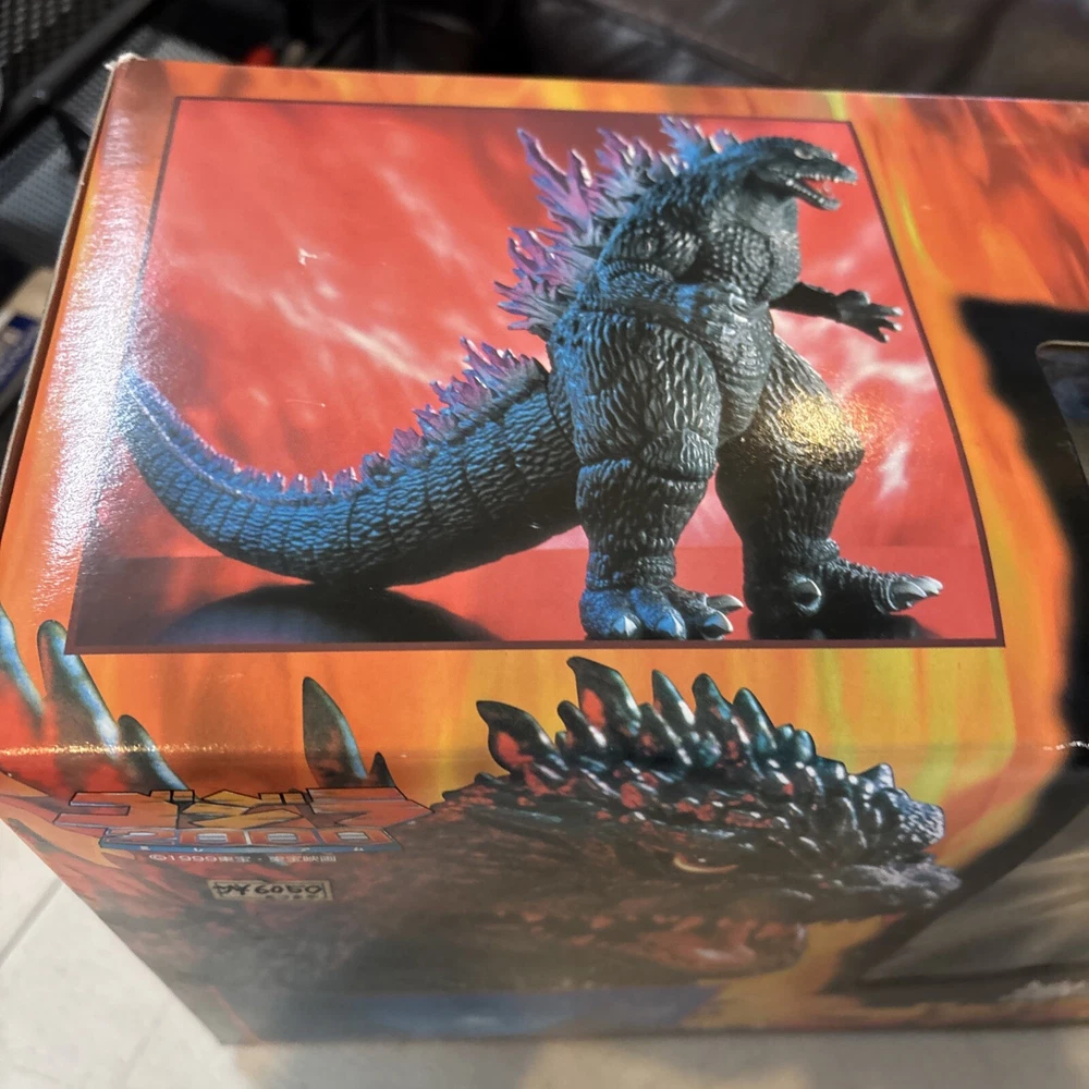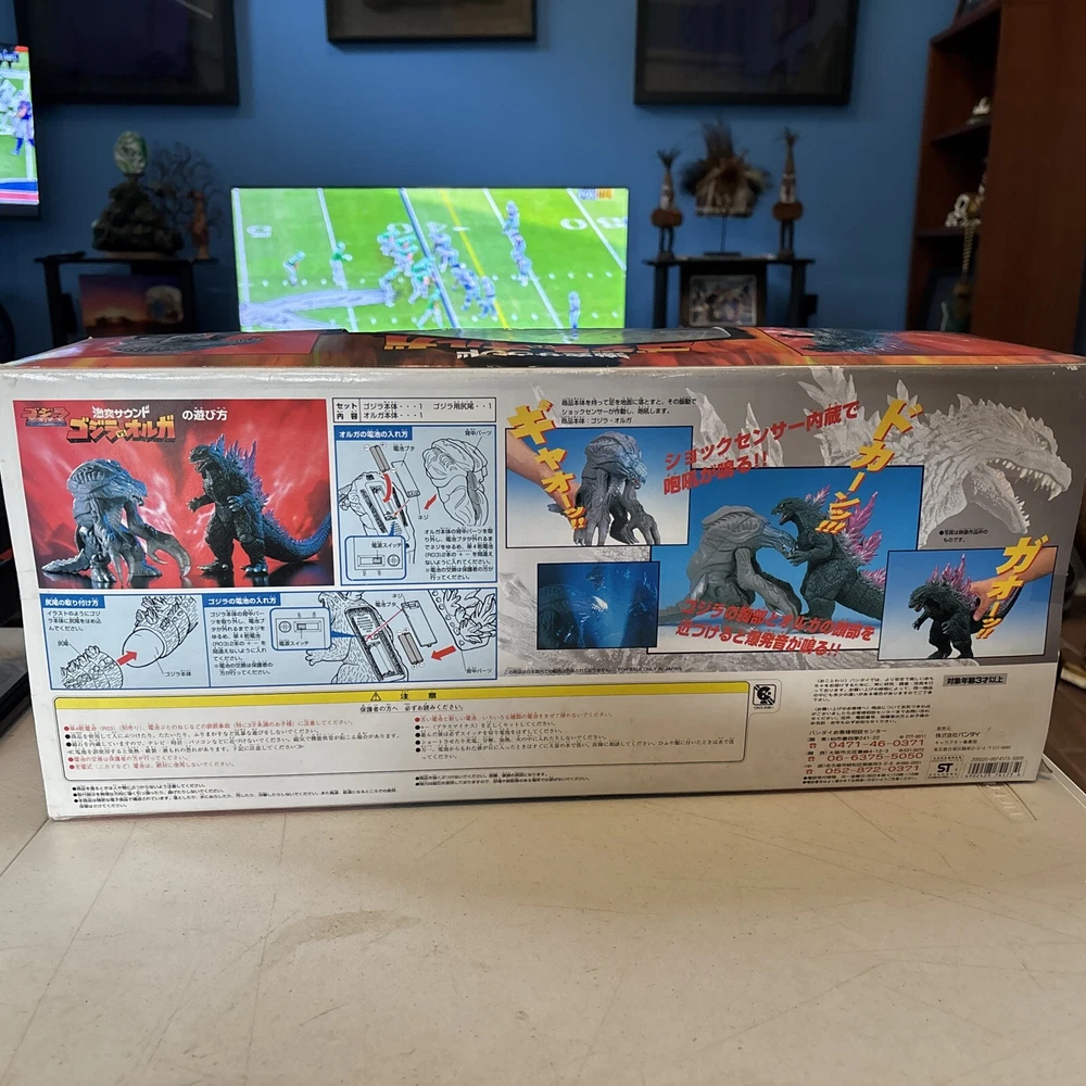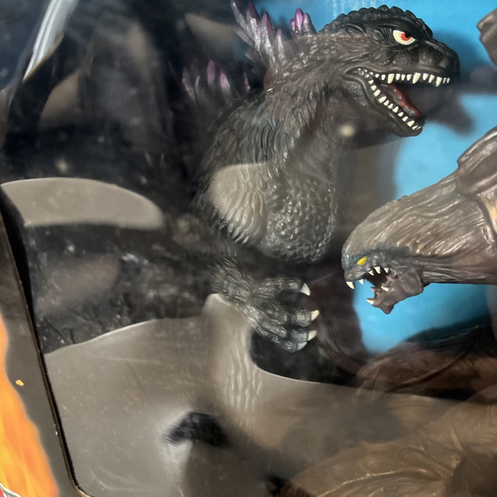 Box never been opened. Over the years factory wires that held figures in place have loosened and figures move a little in box but it has not affected their condition. What you see is what you receive The product is a 1999 Bandai Godzilla vs Orga Sound Battler figure set, featuring a 9-inch Godzilla figure and an 8-inch Orga figure. Both figures are included in the set and are new in their original box. The figures are from Japan and are part of the Godzilla theme, suitable for children ages 3-4 years old. This set offers a fun and engaging way for children to recreate epic battles between these iconic monsters.