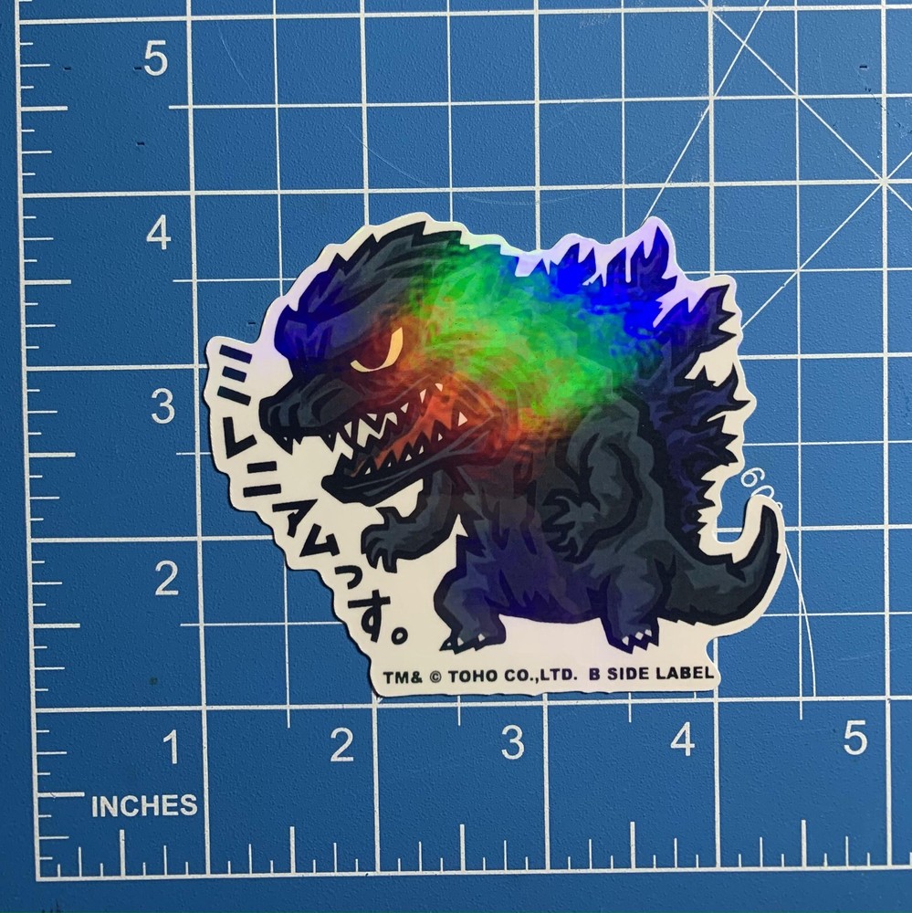 Add some festive flair to your belongings with this Godzilla holographic sticker. Perfect for laptops, skateboards, boxes, and even cars, this waterproof sticker is a great way to show off your love for the iconic movie monster. Designed with a cartoon touch, this sticker features a Santa Claus model of Godzilla, making it a unique and fun addition to your collection. Made in the United States, this sticker is sure to be a hit with fans of the franchise.