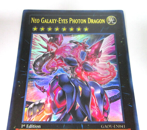 WITH OVER 24,000 POSITIVE FEEDBACK BID WITH CONFIDENCE! 1st Edition Yugioh Trading Card Ultimate Rare Neo Galaxy-Eyes Photon Dragon GAOV-EN041 ! For sale is a 1st Edition Yugioh Trading Card Ultimate Rare Neo Galaxy-Eyes Photon Dragon GAOV-EN041 ! This Yugioh Trading Card 1st edition Ultra Rare Neo Galaxy-Eyes Photon Dragon is in near mint condition. This monster spell card is numbered GAOV-EN041 and it is very sleek and shiny! All pictures are of actual item(s). All items as shown in pictures are included in the purchase. Be sure to add us to your favorites list ! SHIPPING INFORMATION: Standard USPS Shipping, FedEx Home and Ground Delivery Method Calculated INTERNATIONAL SHIPPING: We ship worldwide. Buyers are responsible for customs fees or related fees. Delivery times may very for International shipping 6-10 business days for Priority Mail and 4-5 business days for Express International Mail. PAYMENT: Shipped Items: Tax: IL residents must pay 7.5% sales tax. All items shipped USPS Priority includes Insurance. USPS First Class Mail items sold for over $20.00 automatically have insurance calculated into the shipping cost as a handling fee. First Class Mail Items sold for under $20.00 will not be insured during shipping unless the buyer contacts us. Items without insurance are not eligible for our return policy. We encourage all auctions to be paid within 3 days after action ends. When free shipping is offered, free shipping only applies to the lower 48 states. Local Pickup: Local pickup is available, we accept cash on pickup or payment by Ebay. Local Pickup requires an additional $3 fee, and invoice will be sent through First Class Mail for each purchase. Tax: IL residents must pay 7.5% sales tax. Please know local pickup items must be paid within 3 days. Transactions will be cancelled after 7 days of non-payment. Local pickup items that have been paid for must be picked up within 7 days of auction ending. Any item picked up after 7 days of the auction ending will be subject to a storage fee based on size. Any item not picked up within 14 days of the auction ending will be forfeited without a refund. RETURN POLICY: Trader Jon's does not accept returns for non-defective items. You must return an item in the same condition as it was received, not used or altered in any way. If your item is defective or not as described please contact us so we can resolve your issue. If item is returned opened or in not new condition more then 20% restocking fee may apply. Trader Jons in Round Lake Beach Local Pickup Hours: Please e-mail us through eBay to make an appointment. Be sure to add us to your favorites list ! Note: Trader Jon's is closed Mondays, therefore next day shipping paid for on Sundays will not go out until the following Tuesday.