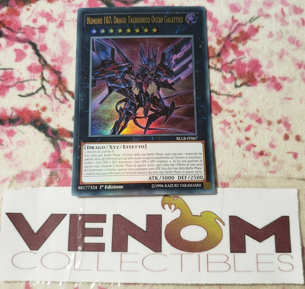 This Italian version of Number 107: Galaxy-Eyes Tachyon Dragon is in fantastic condition—clean edges, vibrant colors, and no visible flaws. A must-have for collectors and duelists who want a rare, high-quality card. Super fast shipping and matches the image perfectly! Very happy with this purchase.