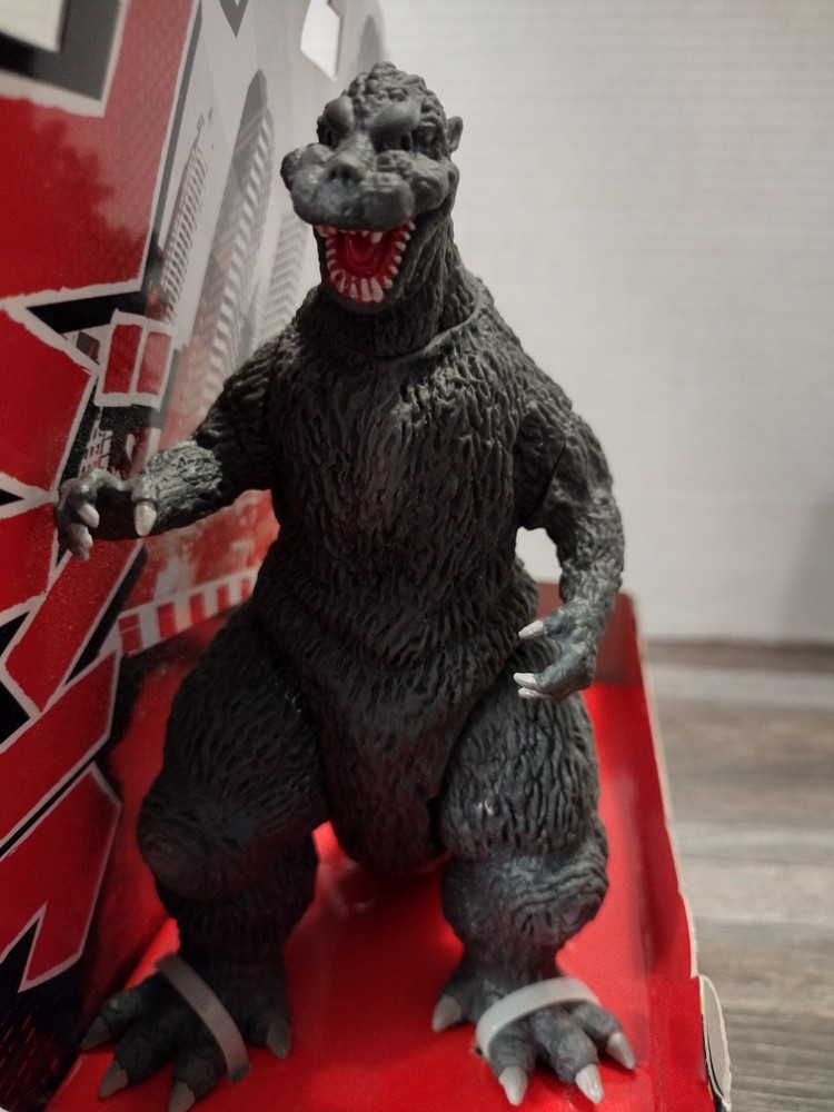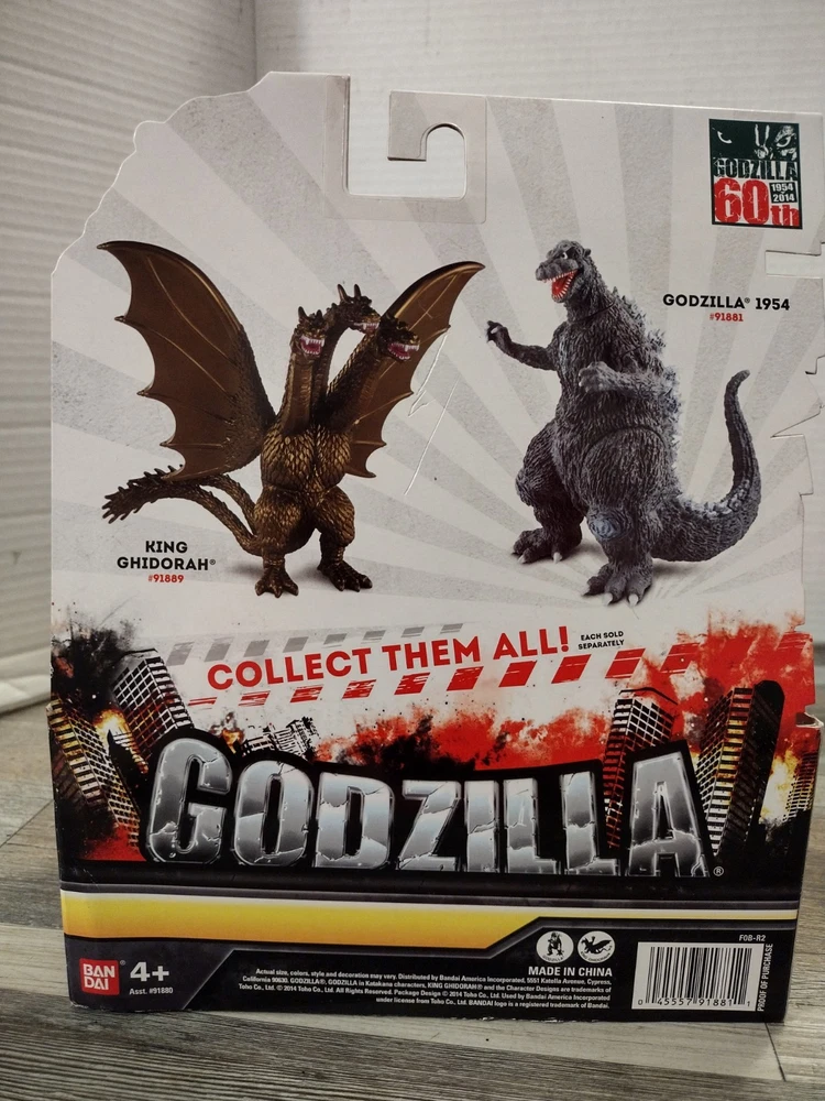 The 2014 Bandai Godzilla 60th Anniversary 1954 Figure is a brand new action figure of the iconic character Godzilla, made of plastic material and standing at 7 inches tall. This collectible item celebrates the 60th anniversary of Godzilla and comes in its original packaging, making it a must-have for fans of the franchise. With a 1:12 scale and multicolor design, this officially licensed Bandai product is a perfect addition to any action figure collection for fans aged 17 years and up. Box shows wear.