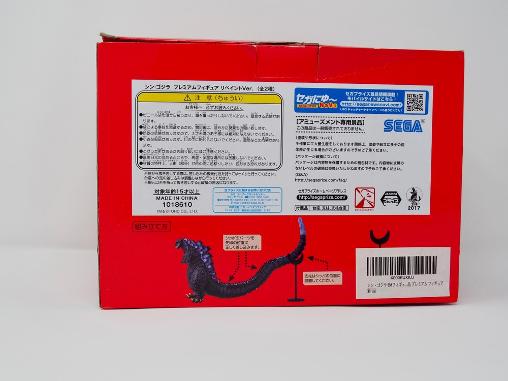 This premium figure by Sega Japan is a must-have for any fan of Godzilla and monster toys. Measuring 5 X 16 inches, Size: 12cm (5 inches) Height • 40cm (16 inches) Along Contour from Head to Tail It features the iconic Shin Godzilla design from the 2016 film. The figure is in like-new condition, having only been opened for display purposes. Made in China and featuring intricate detailing, sculpted and painted in purple . This Godzilla figure is a perfect addition to any collection. The packaging may show some signs of wear, but the figure itself is in excellent shape. Add it to your Godzilla or monster toy collection today. By bidding/buying you agree to the following~ * ** ALL SALES FINAL! *** "AS IS" ***UNLESS SIGNIFICANTLY NOT AS DESCRIBED IN THE LISTING DUE TO *OUR* ERROR. We do not accept any returns unless the item has been grossly misrepresented. In such case, you must contact us via eBay within 3 days from the day you receive your item. NO EXECPTIONS PLEASE CAREFULLY READ THE LISTING & SEE ALL PICTURES The pictures provided are a part of the description and detail any damage not noted. Antique, used, vintage items MAY have broken, chipped, missing attachments, wear, and other damage or imperfections commensurate with age. As Always, images are part of the listing and tell MORE of a story on the item than my word description. Please take the time to carefully review them using the zoom feature before purchase. If an identifying mark, inclusion or defect is visible in the images it is considered disclosed to the buyer. CANCEL LISTINGS and Bids I Will Follow Up With A Dispute... More & More Are Now Doing This And Is Just Not Fair To The Other eBayers. Please note that eBay will automatically open an Unpaid Item Dispute (UPI) if an item is not paid within 4 days DUE TO EXCESSIVE "CUSTOMER BIDDING ERRORS" WE WILL BE NO LONGER CANCELING TRANSACTIONS OR BIDS (YOU JUST HAVE TO CANCEL YOUR OWN BIDDING ERRORS THROUGH EBAY HELP) AND THESE ITEMS WILL GO TO UNPAID ITEM CASES TO STRIKE AGAINST YOUR ACCOUNT. PLEASE BE EXTRA CAREFUL WHEN PLACING YOUR BIDS, BOTH AS WHAT YOU ARE BIDDING ON AND THE AMOUNT YOU ARE BIDDING. NO EXCEPTIONS. PAYMENTS ARE DUE WITHIN 3 DAYS AFTER AUCTION