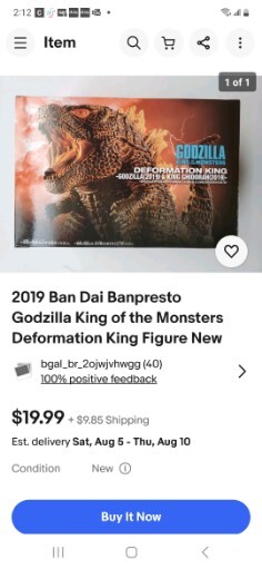Get ready to add the ultimate Godzilla collectible to your collection with this 2019 Ban Dai Panpresto figure from Round1. This highly detailed figure depicts the King of Monsters in all its glory, with intricate features and stunning paint job that showcases its iconic design. The figure is brand new and comes in its original packaging, making it perfect for collectors and fans of all ages. This Godzilla figure is a must-have for fans of the franchise, and with its high-quality construction and attention to detail, it's sure to impress. Whether you're a long-time collector or just starting out, this Ban Dai Panpresto Godzilla King Of The Monster figure is the perfect addition to any collection.