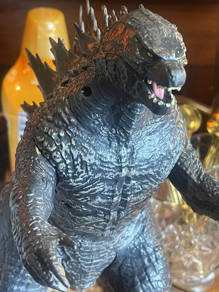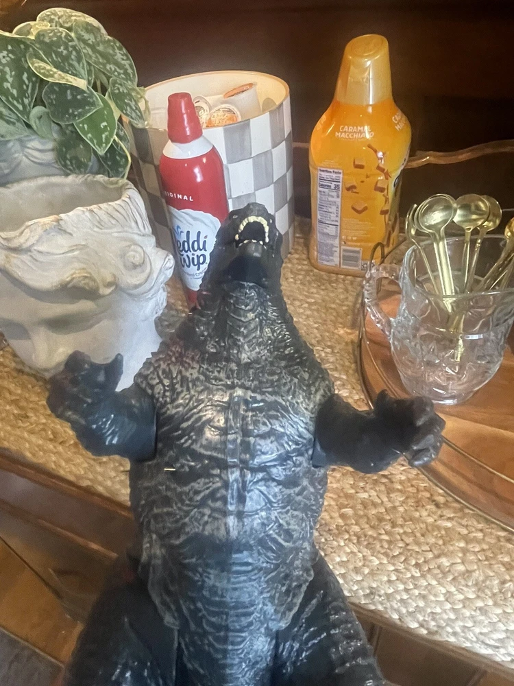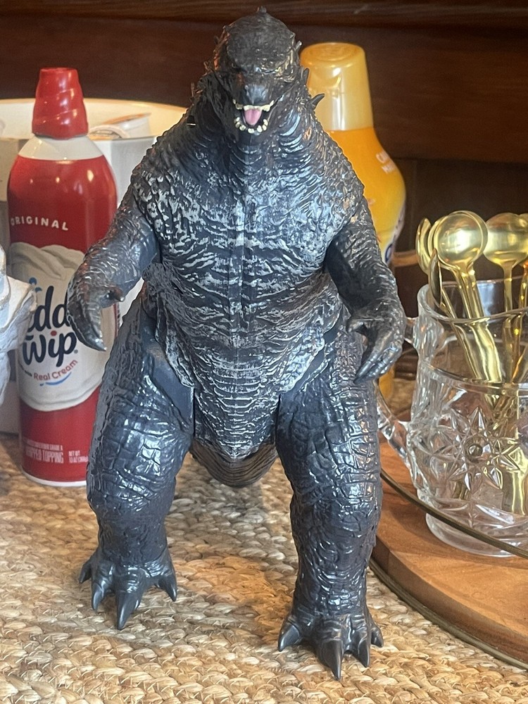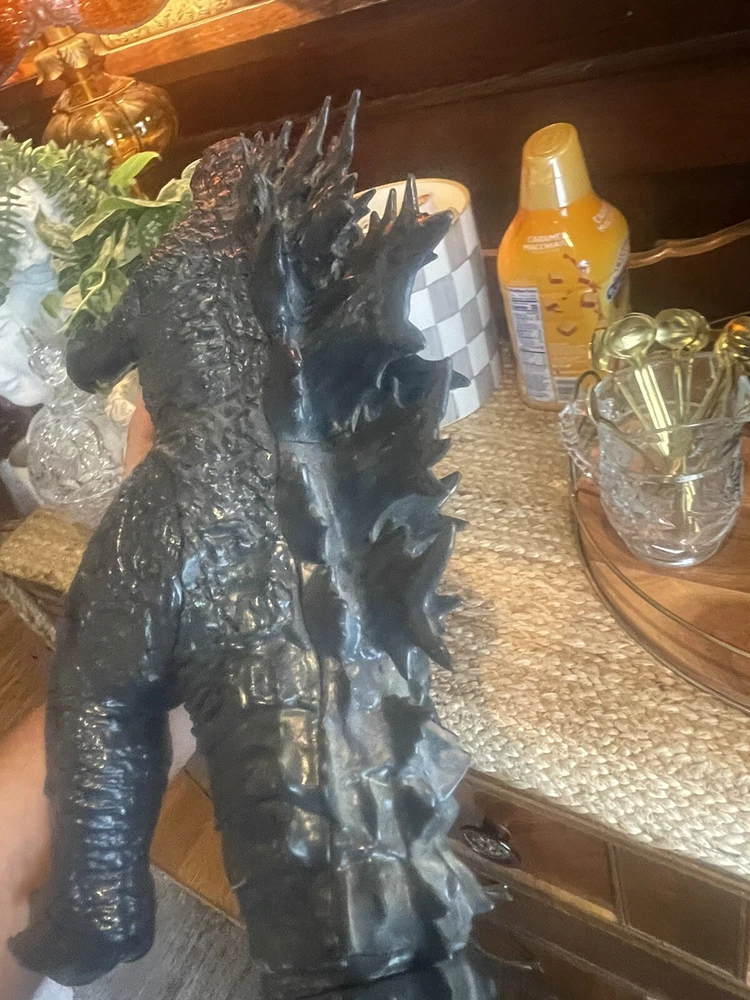 Loose figure do not have the box for it so what you see of the Godzilla is what you get appears to be in good shape I do not see any broken pieces on it around 12 inches tall and 23 inches long. If you have any questions, please ask.