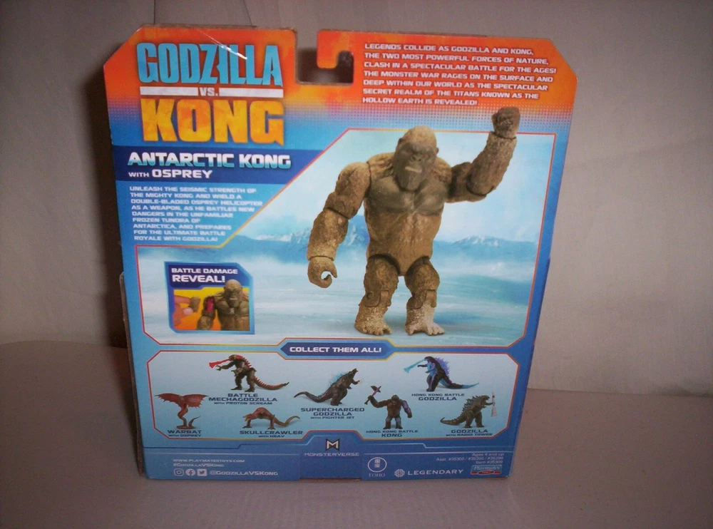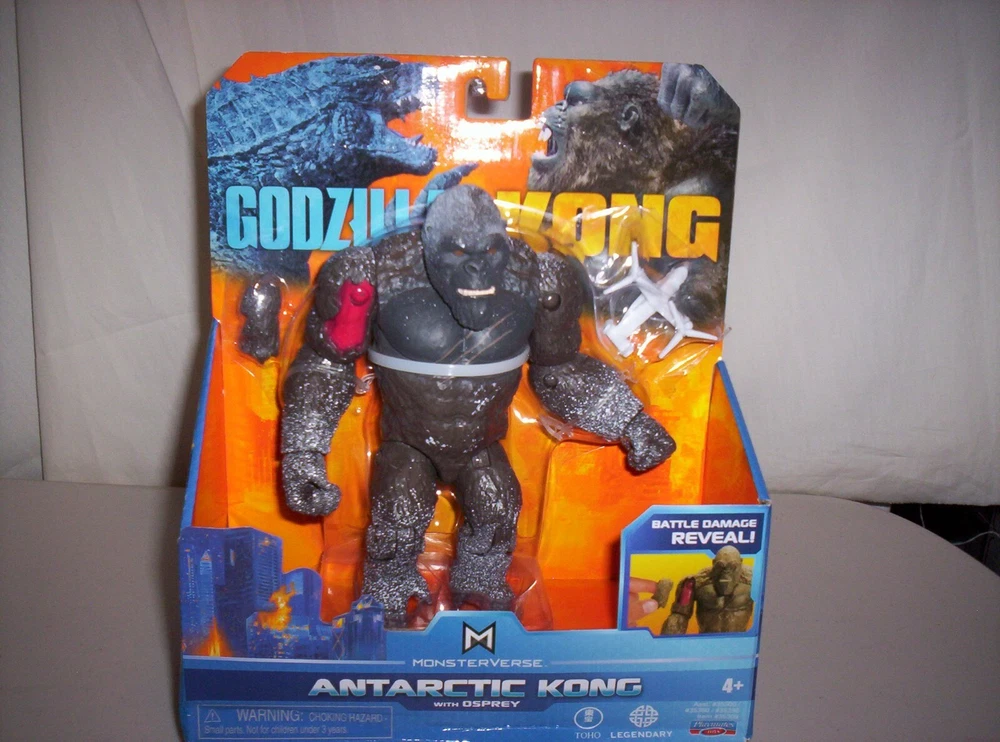 This auction is for a 2021 Godzilla vs Kong Antarctic Kong with Osprey, battle damage reveal! He is new, however his box is bent, see photos....