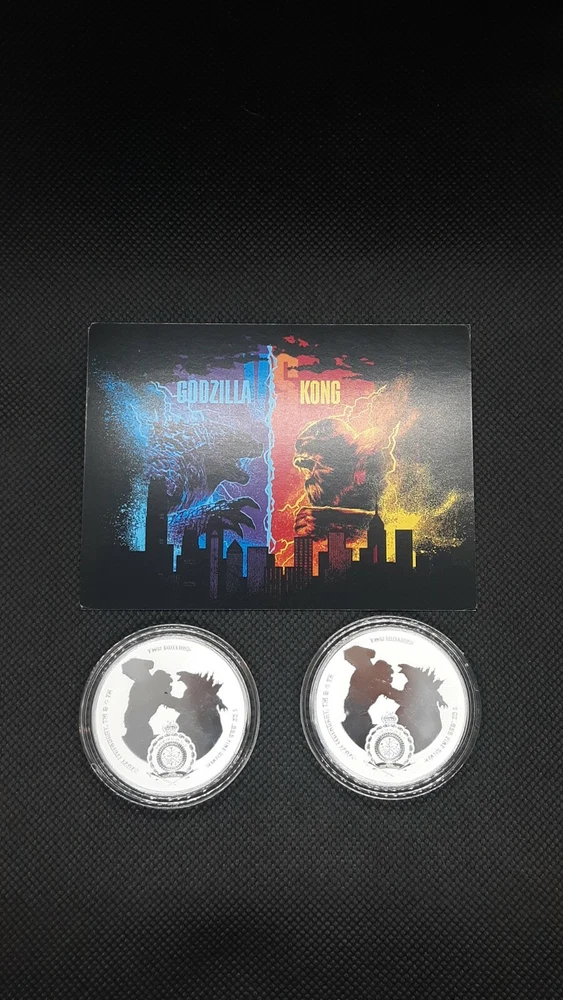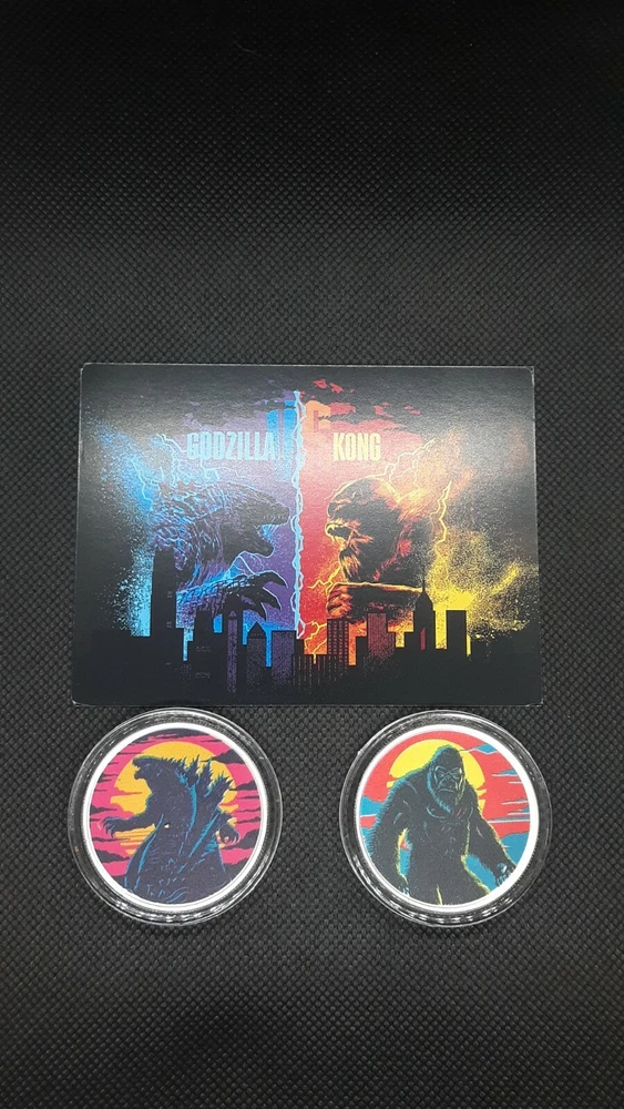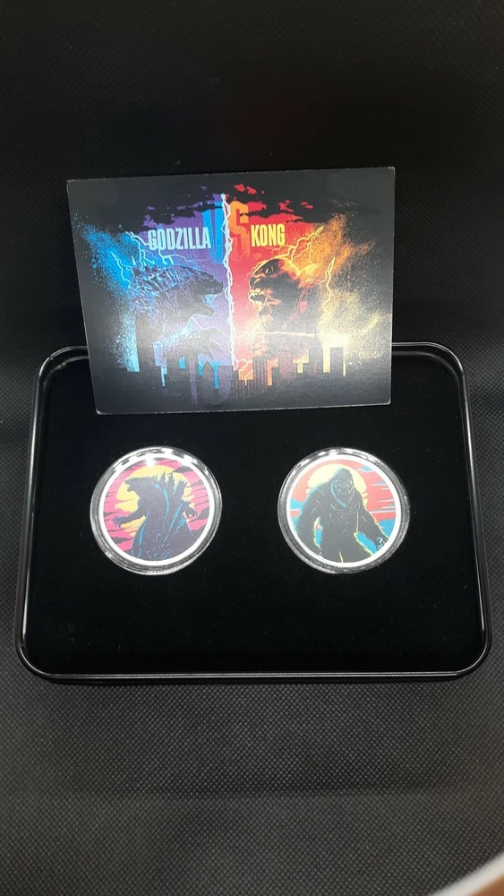 Up for $ale FROM 7772 SILVER ! SHIPPING NOW ! 2 COIN SET IN TIN Coin Highlights: Extremely limited to only 250 sets worldwide! Each coin contains 1 oz of .999 fine Silver, for a total of 2 oz of Silver. The two coins are packaged in a rectangular gift tin, with Godzilla vs. Kong themed outer packaging. Also included is a certificate of authenticity. Obverse: Each coin displays the Niue coat of arms along with the face value and year of issue surrounded by officially licensed Godzilla vs. Kong imagery. Reverse: Each coin features a colorized coin design, only available in the set. One coin features a colorized image of Godzilla, and the other features a colorized image of Kong. Issued by the sovereign government of Niue. Claim one of these highly collectible colorized Godzilla vs. Kong coin sets, including two officially licensed colorized designs of Godzilla and Kong, available only in this set. This extremely limited edition two-coin set make the perfect gift for movie buffs and coin collectors alike. Add this limited edition 2021 Godzilla vs. Kong 2-Coin Silver Colorized set with Gift Tin and COA to your cart today! Godzilla vs. Kong Featuring two of the greatest icons in motion picture history, the stunning Gold and Silver coins in this assortment have extremely limited mintages. Directed by Adam Wingard, legends collide in Godzilla vs. Kong as these colossal adversaries meet in a spectacular battle for the ages. Godzilla vs. Kong is a sequel to Godzilla: King of the Monsters and Kong: Skull Island. Godzilla vs. Kong marks the 36th film in the Godzilla franchise and the 12th film in the King Kong franchise. After being delayed due to the COV-19 pandemic, Godzilla vs. Kong has a theatrical release of March 31, 2021, where it will be available in theaters and on HBO Max. PRODUCT SPECIFICATIONS Year:2021 Grade: Unc./ Brilliant Unc Grade Service: None Denomination: $2.00 Mint Mark: Not Shown Metal Content: 2 troy oz Purity: .999 Thickness: 2.98 mm Diameter: 39 mm Unleash yourself from the Masses. Stack Real Wealth. Click the Buy it Now Button. It's Yours! Thank You for L 00 King! 7772 SILVER METAL with a MESS AG E