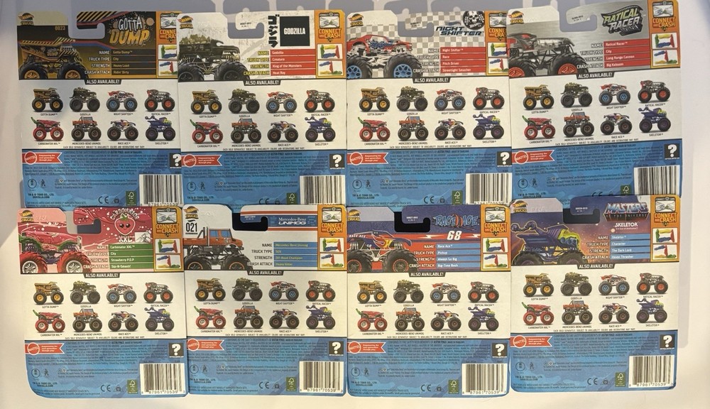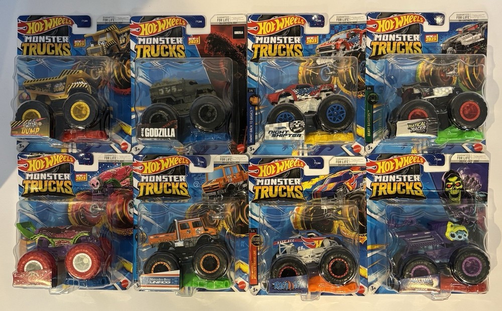 2023 Hot Wheels Monster Trucks 1:64 Complete Set Of (8)-Gotta Dump, Godzilla & 6 Others-Brand New! ***Free Gift With Every Order*** This Brand New 1:64 Scale Monster Truck Lot Includes: —Gotta Dump —Godzilla —Night Shifter —Ratical Racer —Carbonator XXL —Mercedes Benz Unimog —Race Ace —Skeletor