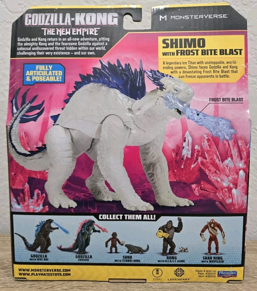 *Free shipping with USPS Ground Advantage. Ships ASAP.* *Some box damage as shown in photos. Small punctures in back of the cardboard and top portion is bent at a slight angle. Actual toy is not damaged.* For fans of the Godzilla x Kong franchise, the 2024 Monsterverse SHIMO action figure is a must-have. This 6-inch figure comes with a Frost Bite Blast and is fully articulated, allowing for a range of dynamic poses. The figure is brand new and still in its original packaging, ready to be added to any collection. The white-colored SHIMO figure is from the Playmates Toys brand and is part of the Godzilla x Kong The New Empire series. It features adjustable parts and comes in a boxed package. This item was manufactured in China in the year 2023 and is perfect for fans of TV, movie, and video game-themed toys.