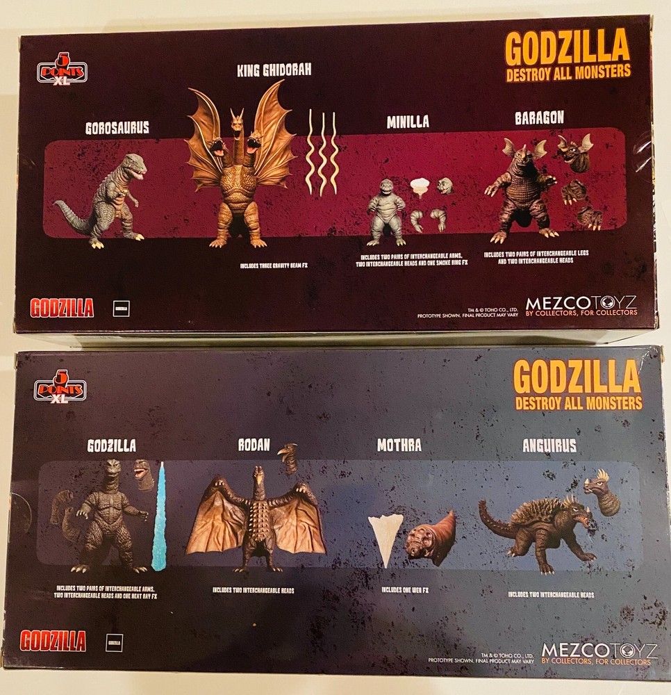 SET OF 2 GODZILLA DESTROY ALL MONSTERS ROUND 1 AND 2 BOX SETS 5 POINTS XL (MEZCO) 2022 BOTH BRAND NEW , MINT IN SEALED BOXES ROUND 2 CONTAINS GOROSAURUS, KING GHIDORAH, MINILLA AND BARAGON FIGURES ROUND 1 CONTAINS GODZILLA, RODAN, MOTHRA AND ANGUIRUS FIGURES HIGHLY DETAILED AND LIMITED ! ALL TOYS WILL BE PACKED WITH EXTREME CARE TO MAKE SURE YOUR ORDER ARRIVES SAFELY. WE WANT YOUR CUSTOMER EXPERIENCE TO BE AN OUTSTANDING ONE AND YOUR FEEDBACK TO REFLECT THAT. ANY PROBLEMS? CONTACT US. WE ARE ONLY HUMAN AND ERRORS OCCUR BUT WE HAVE A FANTASTIC TRACK RECORD OF FIXING EVEN THE SMALLEST PROBLEMS TO MAKE SURE THAT YOU'RE 100% SATISFIED WITH YOUR PURCHASE. GRADING OF PRODUCT IS ACCURATE AND CONSERVATIVE. WHEN YOUR ORDER SHIPS A TRACKING NUMBER WILL BE UPDATED INTO YOUR AUCTION. ITEMS WILL BE SHIPPED OUT UNLESS YOU PREFER TO PICK UP AT OUR RETAIL STORE TO SAVE ON SHIPPING FEES. WHEN IN NEW JERSEY STOP BY OUR RETAIL LOCATION AT 579 RT. 22 WEST, NORTH PLAINFIELD. WE HAVE BEEN AROUND SINCE 1990 AND HAVE A UNIQUE, WELL STOCKED COMIC SHOP. WE APPRECIATE YOUR PATRONAGE , THE JC COMICS STAFF BUYING, BUYING, BUYING, BUYING !!! WE ARE BUYING COMIC AND TOY COLLECTIONS OF ANY AND ALL SIZES (FROM 1930S TO PRESENT) PLEASE CONTACT ME VIA EBAY MESSENGER AND I WILL GET BACK TO YOU PROMPTLY