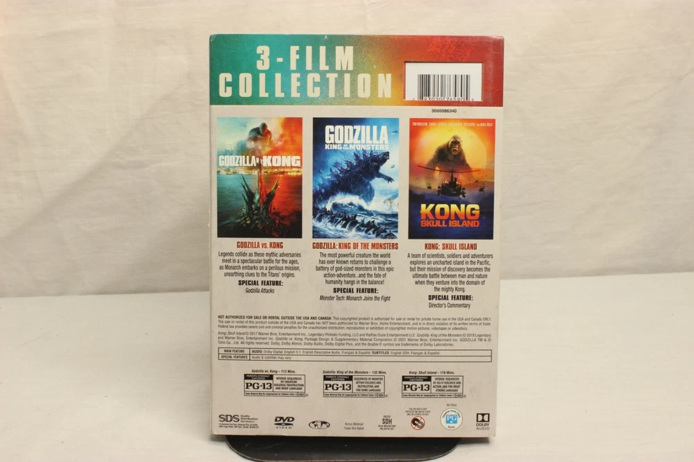 3-Film Collection Godzilla vs Kong, King of Monsters, Kong: Skull Island DVD...