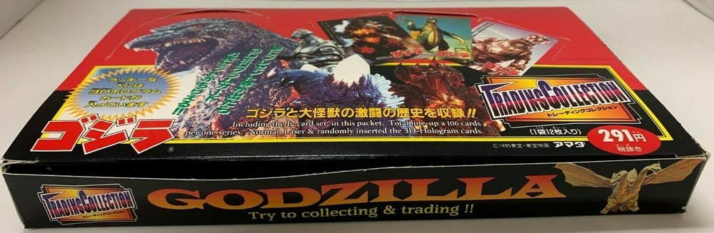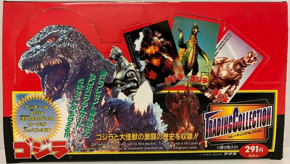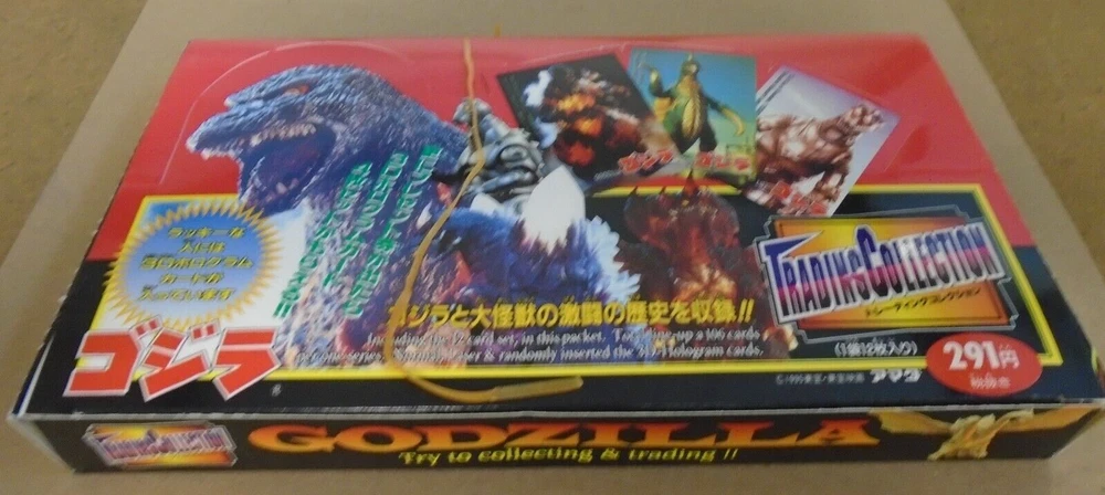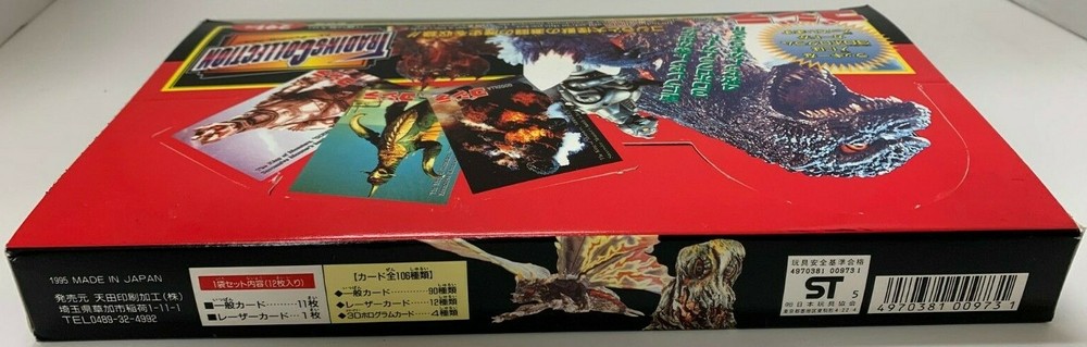 AMADA GODZILLA COLLECTION TRADING CARD BOX 15 PACKS 1995 Description: NEW This listing is for (1) AMADA 1995 GODZILLA COLLECTION TRADING CARD BOX 15 PACKS . Item is new and in excellent condition (sharp corners with no dings or creases). Boxes come from a factrory case. Boxes did not come shrink wrapped for this series. This trading collection series had a simple rubber band holding the box shut. Rubber bands are brittle due to age. Please refer to gallery photos. Item will be shipped in secure package. Be sure to check our ebay store for more items. PAYMENT Payment by paypal must be made at the time of purchase. California residents pay local sales tax. SHIPPING Combined shipping available for items purchased within 1 day of first purchase. Payment must be made with a single payment. Use the shipping options page to check the shipping costs BEFORE bidding on an item. Email if shipping does not show up. US Buyers : PO Boxes, AK, HI, and APO/FPO addresses must use USPS mail option. International Buyers If paying for multiple items, do not pay until you have received a shipping quote. Item will be shipped via Priority or Express mail. Full value will be listed on customs form. Import duties, taxes and charges are not included in the item price or shipping charges. These charges are the buyer's responsibility. Please check with your country's customs office to determine what these additional costs will be prior to bidding/buying. 0XSTR 10/05/24 2XSTR 11/08/24 WS 1XSTR 11/17/24 WS (NON-SPORTS / SHELF)