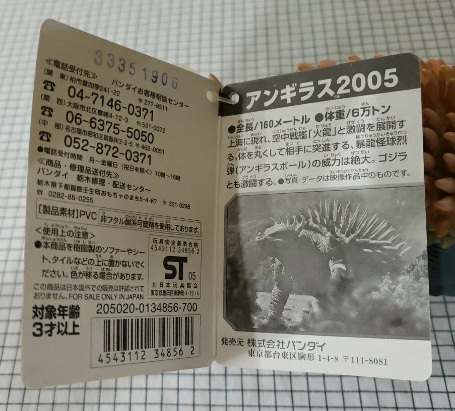ANGUIRUS / ANGILAS Movie Monster Series Figure by Bandai. New with Original Tag. Item is new but sold AS IS. Perfect condition not guaranteed. The items may be warped and/or show minor damage from long storage. Please contact me with any questions or concerns. Additional photos or details are available upon request. A portion of all sales are given to charitable causes. Thank you in advance. Comes from smoke and pet free home. Thanks for looking! Here's what AI has to say... This is a brand new Bandai Movie Monster Series vinyl figure of Anguirus from the 2005 movie Godzilla Final Wars. It comes with its original tag and measures 12 inches in length, 3.5 inches in height, and 4 inches in width. The figure is made of Vinyl and features the character Anguirus/ Angilas. It is an original licensed reproduction from the Godzilla franchise and is part of the Bandai Movie Monster Series.