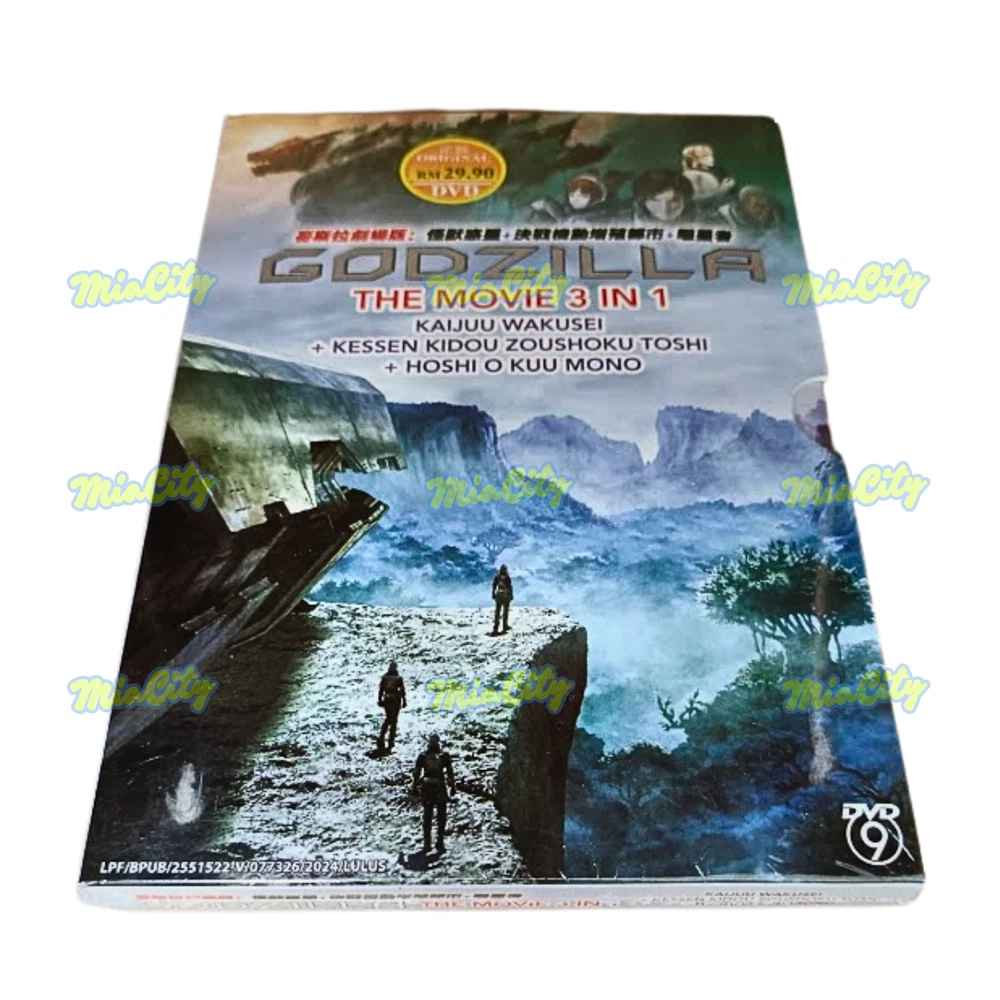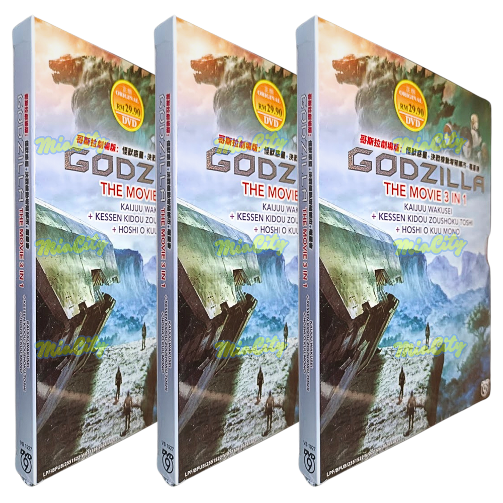 Japanese Anime DVD: Godzilla The Movie 3 In 1: Kaijuu Wakusei + Kessen Kidou Zoushoku Toshi + Hoshi O Kuu Mono Language: Japanese/English Subtitle: English/Chinese Media Type: NTSC; Widescreen 16:9, All Region No of CDs: 1 DVD The last summer of the 20th Century. That day, the human beings learn that they are not the only ruler of the planet Earth. The appearance of the giant living creatures “Kaiju's” and the ultimate existence that destroys all monsters: Godzilla. Through the battle against kaiju's that lasted for half a century, human beings has experienced continuous defeat, and finally plans to escape from the Earth. And in 2048, only those who were selected by the A.I. managed under the central government boarded the inter-sidereal emigrant spaceship “Aratrum” to head for “Tau Cetus e”, the planet beyond the distance of 11.9 light-year. However, the environmental condition differences between that of the Earth and Tau e, which they finally arrived after 20 years were far beyond the predicted numbers, and was not an environment considered to be habitable by human beings. The young man on the emigrant ship: Haruo, who saw his parents killed by Godzilla in front of his eyes when he was 4 years old, had only one thing in his mind for 20 years: to return to the Earth and defeat Godzilla. Shut out from the possibility of emigration, as the living environment in the ship deteriorates, the group of “Earth Returnists” led by Haruo became the majority, and determines to head back to Earth through a dangerous long-distance hyperspace navigation. However, the Earth they have returned has already passed the time of 20,000 years, and has become an unknown world with the ecosystem reigned by Godzilla. At the end, will human beings win back the Earth? And what will Haruo see beyond his fate?