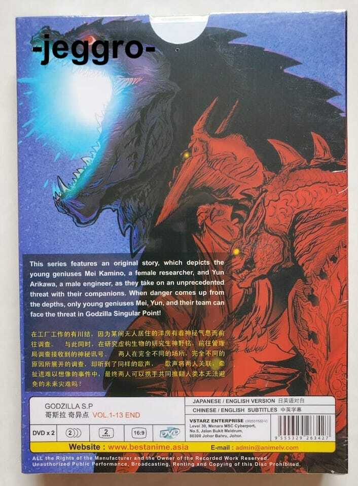 !!! FREE SHIPPING !!! ** Brand New! ** Your order will be shipped within one day after payment confirmed. Anime DVD: Godzilla S.P (Vol. 1-13 End ) Language: Japanese/English Subtitle: English/Chinese/Malay Media Type: NTSC; Widescreen 16:9; All Region Production: 2021 No of CDs: 2 DVD This series features an original story, which depicts the young geniuses Mei Kamino, a female researcher, and Yun Arikawa, a male engineer, as they take on an unprecedented threat with their companions. When danger comes up from the depths, only young geniuses Mei, Yun, and their team can face the threat in Godzilla Singular Point! Payment & Shipping: Item will be processed and ship within 1 working day (not included weekend or public holiday). Tracking number will be provided. As the seller, we are not liable for any extra cost/ charge/ tax imposed by your custom upon receiving the package. Item should reach to your doorstep within 14-30 working days, subject to locations and custom clearance. Return Policy: All sales are FINAL and Non-negotiable. Items can be returned to exchange within 14 days. The buyer is responsible for return shipping cost. Before we ship the item, we will do a final check to make sure the item is in undamaged condition. Thus, we won't bear any responsibility for any item damaged during shipping. If the item is missing in the transit, we will refund 100% to the buyer. If buyer have received the incorrect item, please contact us as soon as possible. Please provide picture's which incorrect item status can be clearly shown. We will resolve the problem quickly and after confirm, we will replace the correct item to buyer as soon as possible. Buyer return incorrect item to me must use "Registered Airmail" with tracking number so both parties can trace the parcel status. About Left or Leaving Feedback: Please contact me to resolve any bad issue before leaving neutral or negative feedback. I usually leave feedback for buyers after 3 weeks or the parcel confirmed delivered. Thank you for your business! Powered by SoldEazy