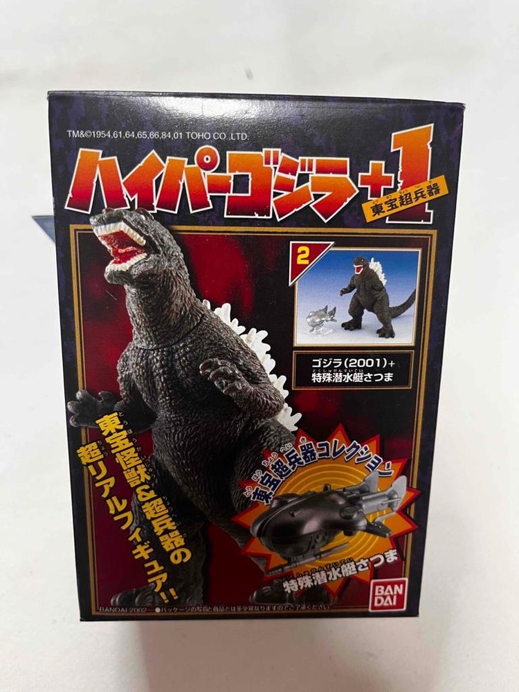2002 BANDAI Hyper 2001 GMK Godzilla + 1 Satsuma Figure unopened MIB 2002 BANDAI Hyper 2001 GMK Godzilla + 1 Satsuma Figure unopened MIB Description date 2002 box size 9 x 6 x 13 cm has a few dings or dents on the box. hard to see in the photos never opened......i don't recommend eating the gum 100 gr 300+ Listing Templates! Auctiva gets you noticed! The complete eBay Selling Solution. Track Page Views With Auctiva's Counter