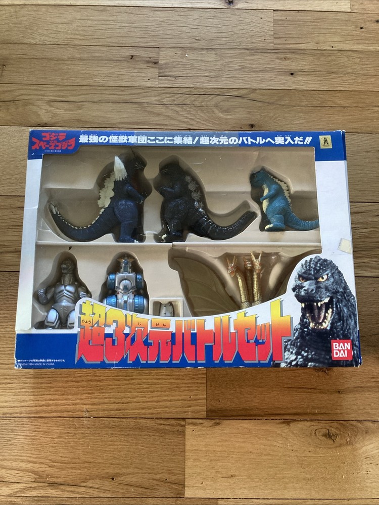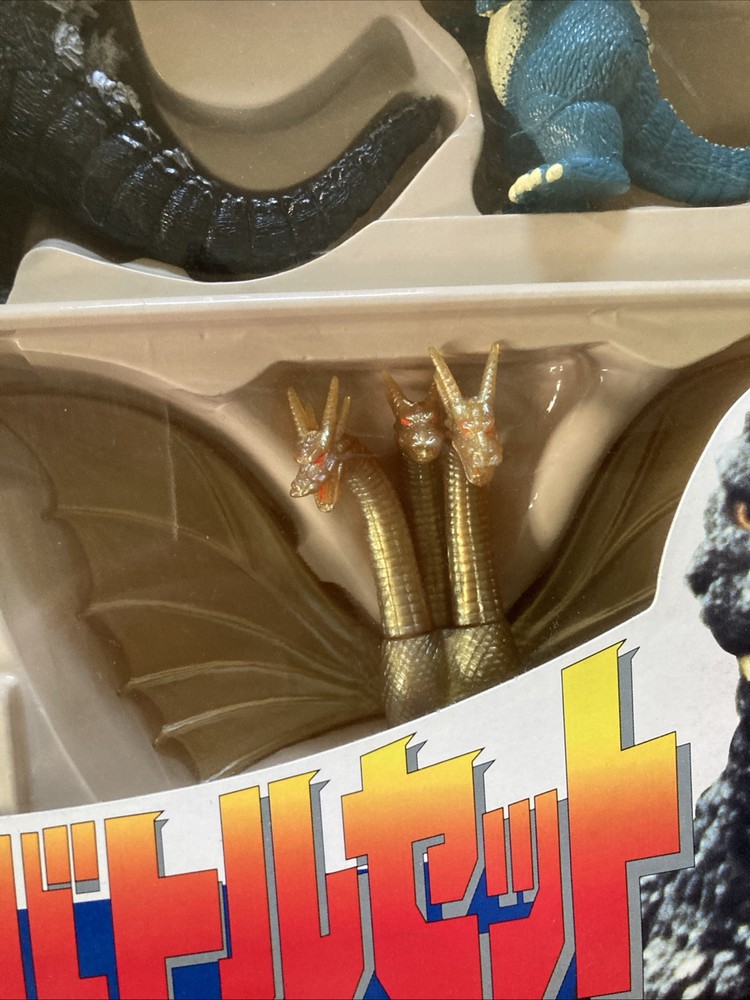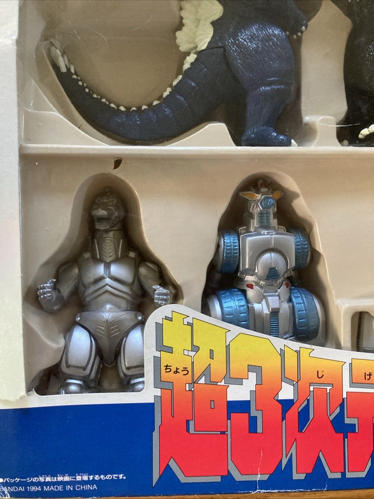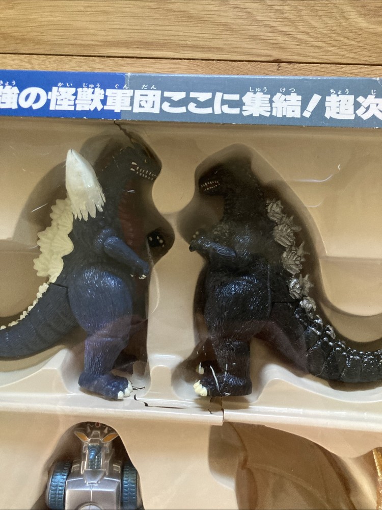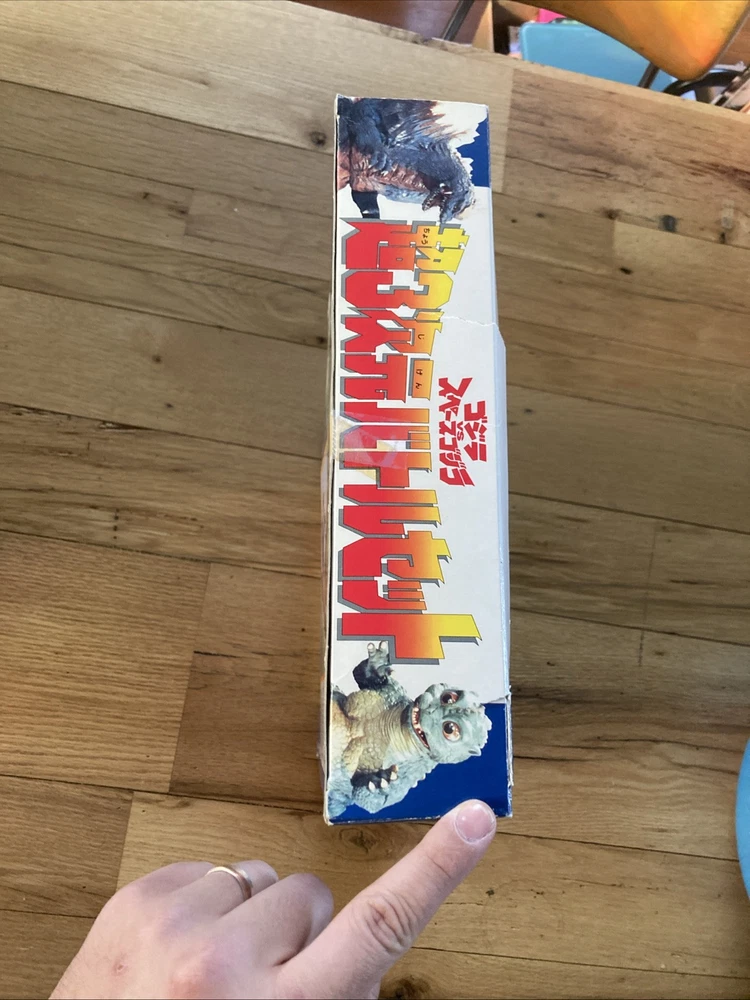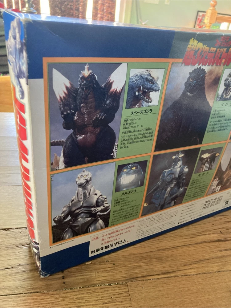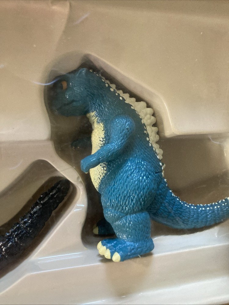This mini candy toy set from Bandai features the iconic Godzilla vs. SpaceGodzilla design and comes in its original box. Produced in 1994, this collectible set is perfect for fans of the Godzilla theme and mini candy toys alike. The set includes both Godzilla and SpaceGodzilla figures, making it a great addition to any collection. The Bandai brand is well-known for its high-quality products, and this mini candy toy set is no exception. The figures are beautifully designed and crafted, with attention to detail that will delight fans of the Godzilla series. With its original box, this set is a must-have for collectors of Godzilla memorabilia.