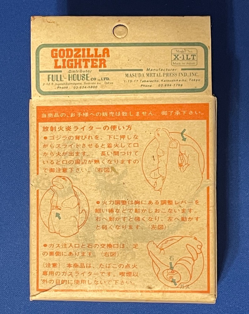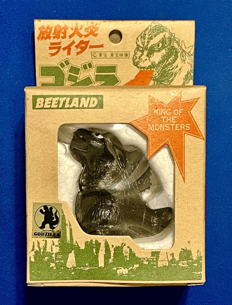 Vintage original 1978 Beetland Godzilla lighter Free Shipping to Domestic Lower 48 States USA Rare science fiction and horror genre collector item made in Japan, featuring the classic monster. Condition is mint, new in box, never opened. Stored since NEW in indoor climate controlled space and inside container, away from sunlight and dust to maintain original packaging color and condition, undisturbed until now for photo selection, then stored again. You can find these used, sometimes even with a box. But finding one actually brand new never out of the box? Probably not again. Buy with confidence from a seller with 100% ratings, on eBay since the beginning of it's second year. Pictures are originals taken recently of actual item. All pictures and descriptions ©2025 by "Watches" on eBay. No original text or photos may be reproduced without expressed written permission except to final paid purchaser, who is then granted full use.