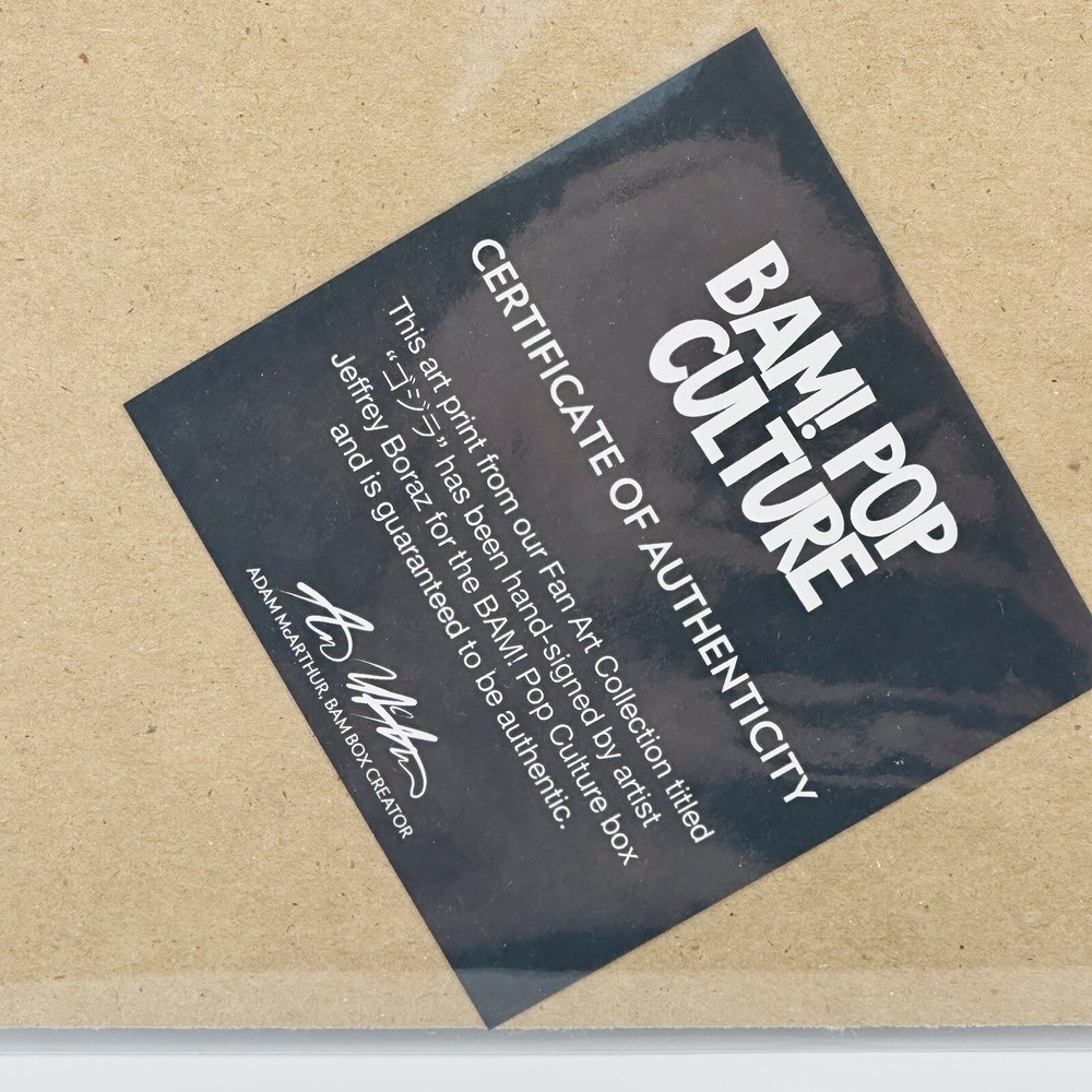 This Bam Box Godzilla 8x10 art print is a unique piece signed by artist Jeffrey Boraz. The print features a stunning depiction of the iconic Godzilla subject, and is numbered 2289/3000. This original licensed reprint was manufactured in Japan and is a must-have for any art collector or Godzilla fan. The print is signed by Jeffrey Boraz himself, adding a touch of authenticity to this incredible piece. All of our items listed as used are sold as is per the photos in the listing. If you would like additional photos we are always happy to provide them. Shipping and Handling We ship all items within one business day. Anything purchased Friday after 9am EST through Sunday will ship first thing Monday morning barring federal holidays. All of our items are shipped via USPS Priority Mail or USPS Ground Advantage depending on weight. All of our items are packaged with the greatest of care to ensure safe delivery. Our store reviews can attest to this s please check them out if you would like further reassurance! Messages We value everyone who takes the time to browse through our store so if you ever have a question or concern regarding this or any of our items please don’t hesitate to message. We answer all of our messages within 24hours most within minutes!