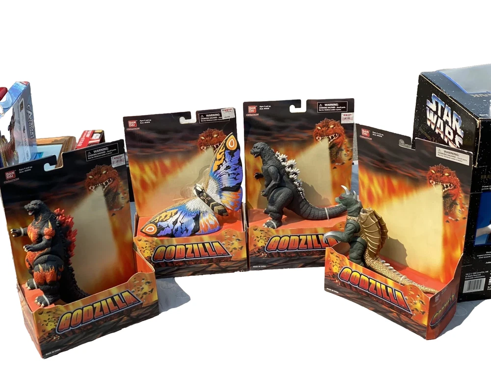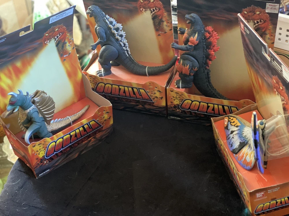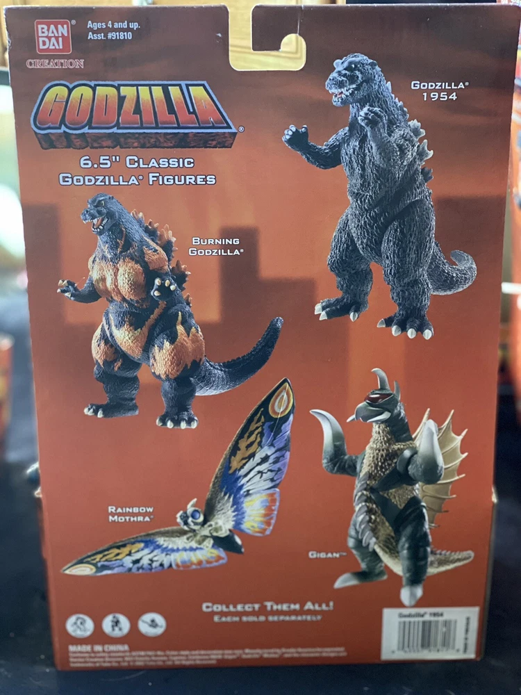 For all the Godzilla collectors out there, this is your chance to own a rare 1st wave complete set of Bandai 6.5 Classic Godzilla figures from 2002. The set includes four brand new in box figures, featuring the iconic monster from the Godzilla franchise. Burning Godzilla Godzilla 1954 Gigan Rainbow Mothra These figures are a must-have for any fan of the series, and are sure to impress with their intricate details and high-quality construction. Whether you're a long-time collector or just starting out, this set is a great addition to any collection. So don't miss out on this opportunity to own a piece of the Godzilla legacy!