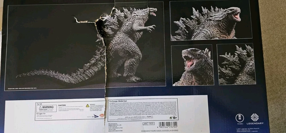Bandai Godzilla vs Kong SOFVICS Godzilla Ichiban Figure w/ box. See photos. Box was damaged in transit. Figure is 100% fine. Figure has never been removed from inner packaging.