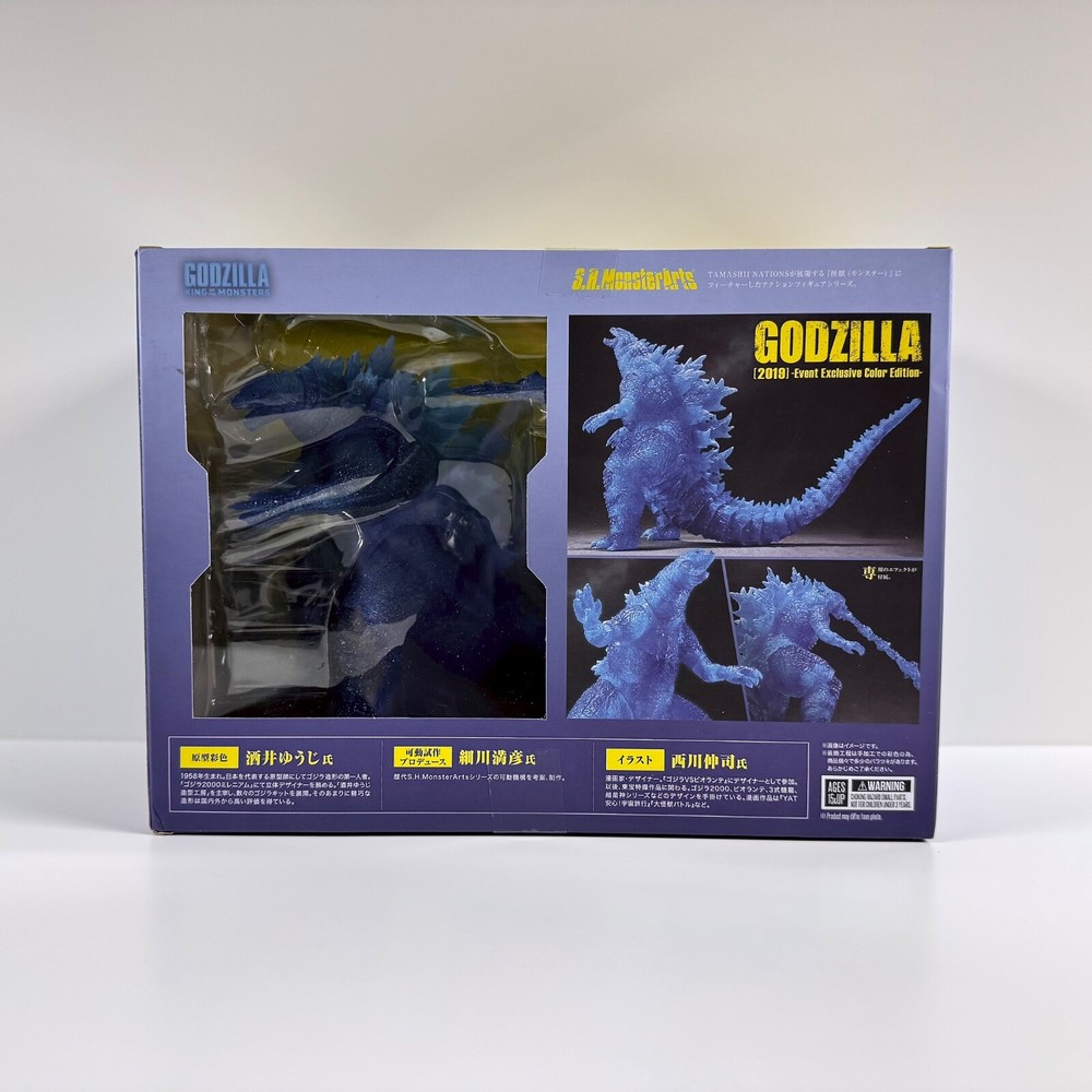 Bandai SH MonsterArts Godzilla 2019 Event Exclusive Color (Clear Blue) Edition NEW Sealed MISB. Brand NEW & Factory Sealed. Comes with original brown mailer box. Mailer box has dent. Will be shipped in another box for protection. Please see photos as they are part of the description. All reasonable offers will be considered. I have a lot of other Godzilla items & offer combined shipping. If you have any questions please send me a message. Thank you for looking!
