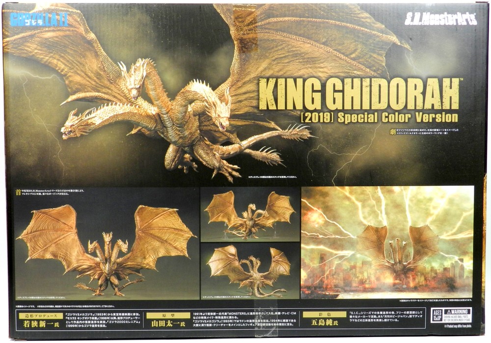 This King Ghidorah figure is absolutely stunning—the special color version makes it pop even more! The sculpt and articulation are top-notch, perfectly capturing its menacing presence. Despite the packaging being damaged, the figure itself is in great shape. A must-have for any Godzilla fan—worth every penny!