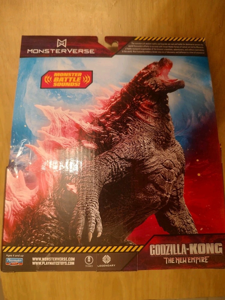 "Battle Roar Godzilla Evolved" Action Figure from Godzilla x Kong : The New Empire, 'Monsterverse' box edition. Figure stands approximately 7 inches tall, and is mint in original box. Produced by Playmates Toys. Please see photos for exact condition of item.