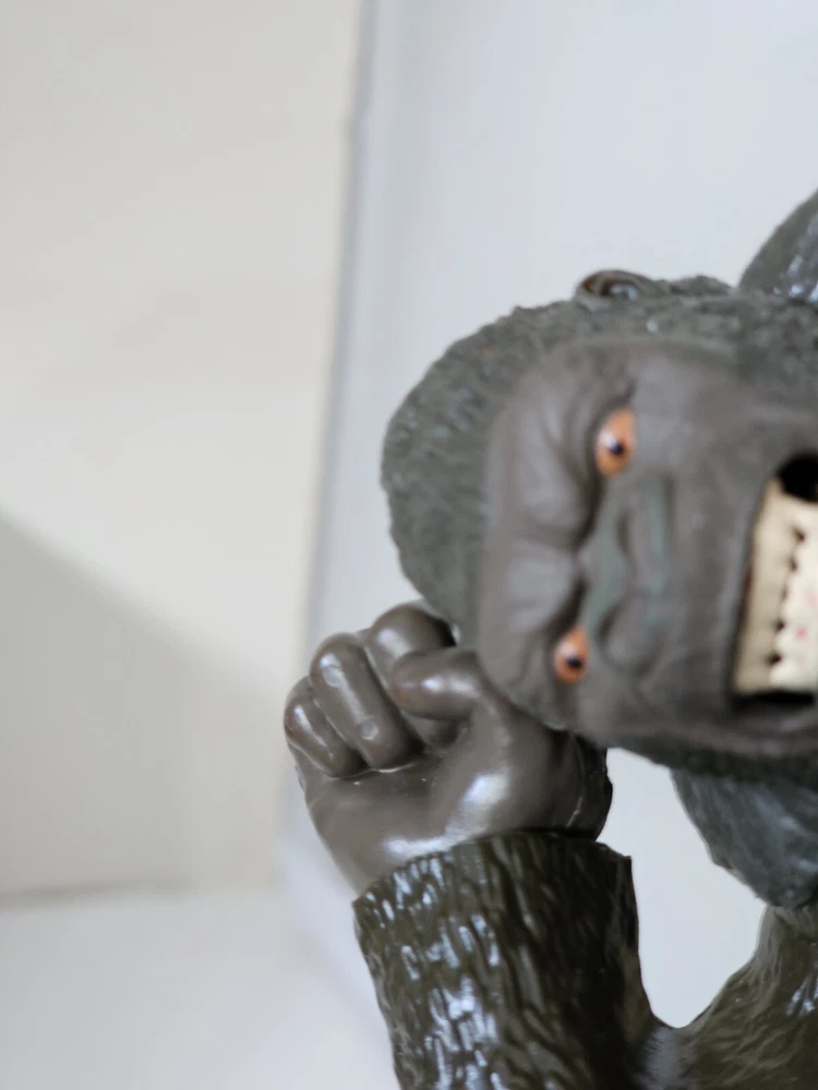 This Battle Roar King Kong Action Figure is a must-have for any fan of the iconic monster. This 7-inch figure is highly detailed and features King Kong with sound effects that perfectly capture his roar and growl. The figure is battery-powered and is made of ABS plastic, making it durable and long-lasting. The figure comes with a vintage airplane and is perfect for recreating scenes from the movie or for displaying in a collection. This original item is a fantastic addition to any King Kong or Godzilla fan's collection.