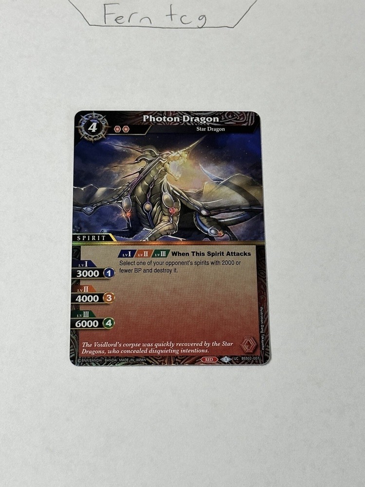 Photon Dragon 7 (1x) Condition: Near Mint Set: False Gods Rarity: Uncommon Foil You’ll get 1 Photon Dragon card in a sleeve for a great price and speed! This order will be shipped the same business day as it is purchased most of the time unless there is an emergency. I will send you a message before I send the order and afterwards as well! If you take multiple items you will save on shipping big time too just let me know if interested! Thank you so much for supporting my store!