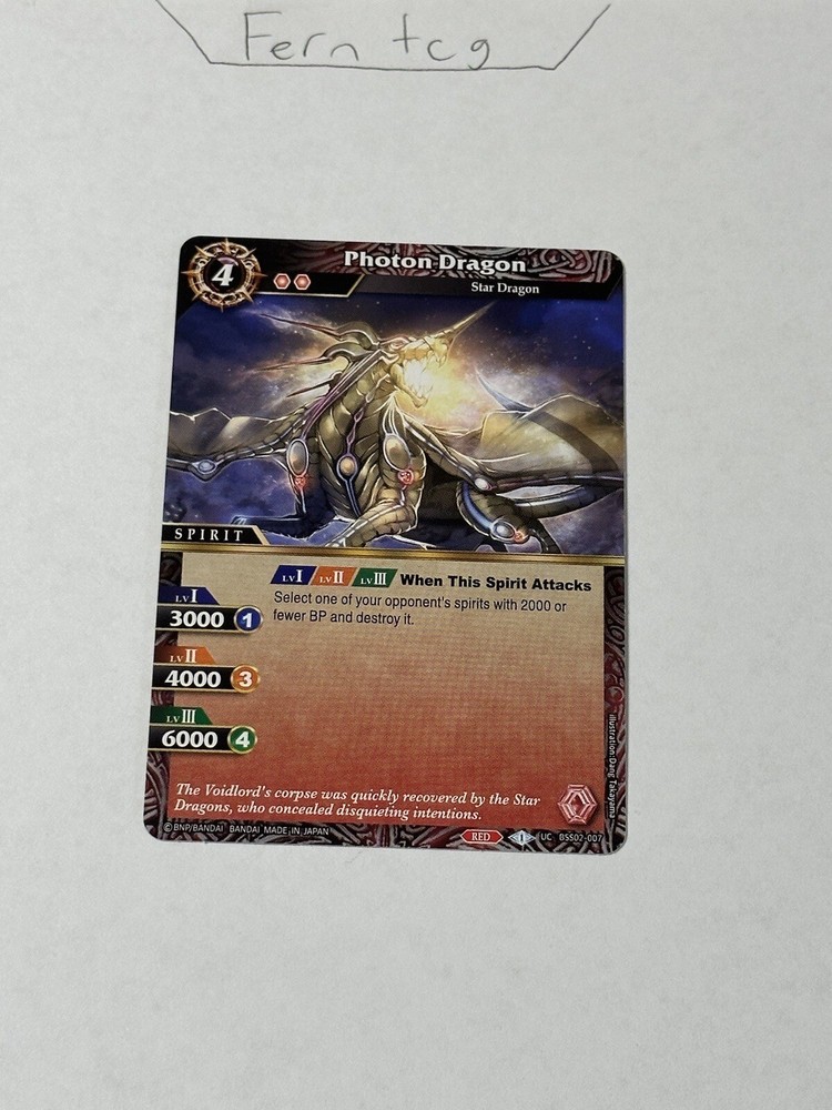 Photon Dragon 7 (1x) Condition: Near Mint Set: False Gods Rarity: Uncommon You’ll get 1 Photon Dragon card in a sleeve for a great price and speed! This order will be shipped the same business day as it is purchased most of the time unless there is an emergency. I will send you a message before I send the order and afterwards as well! If you take multiple items you will save on shipping big time too just let me know if interested! Thank you so much for supporting my store!