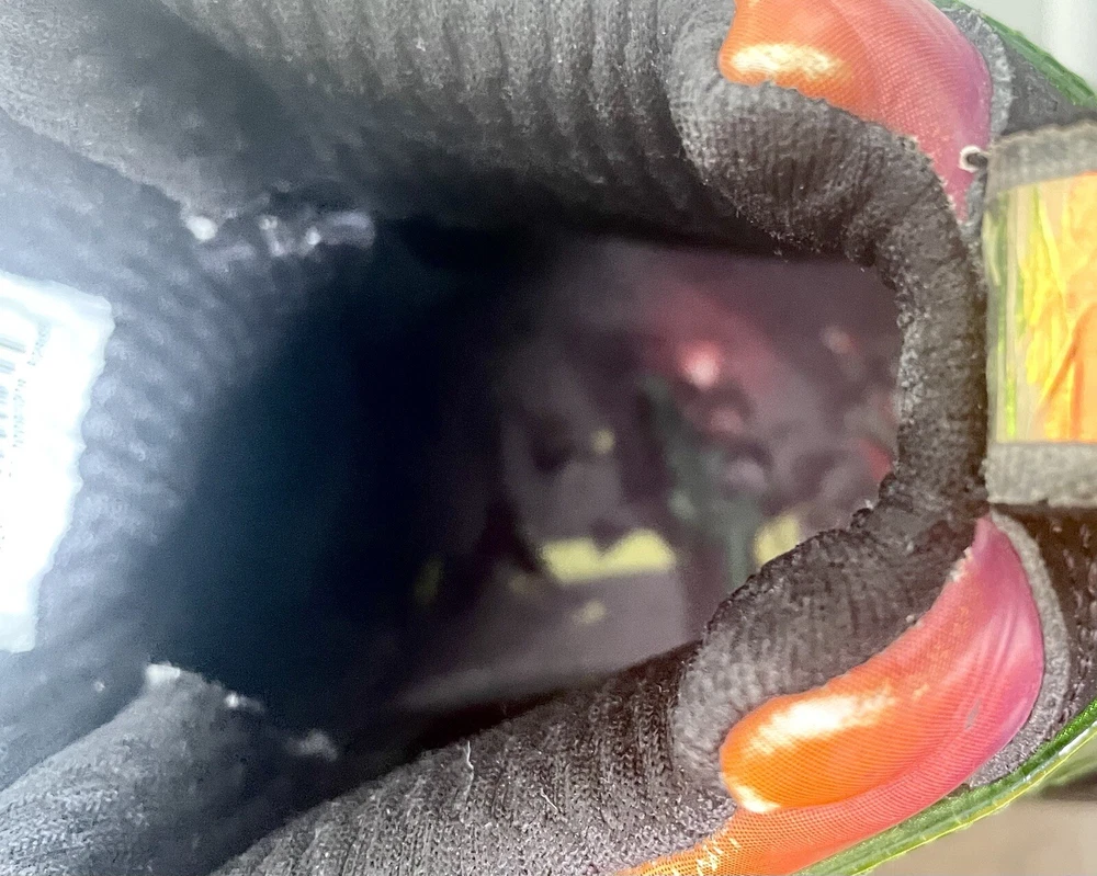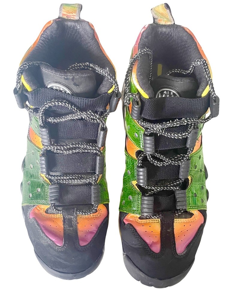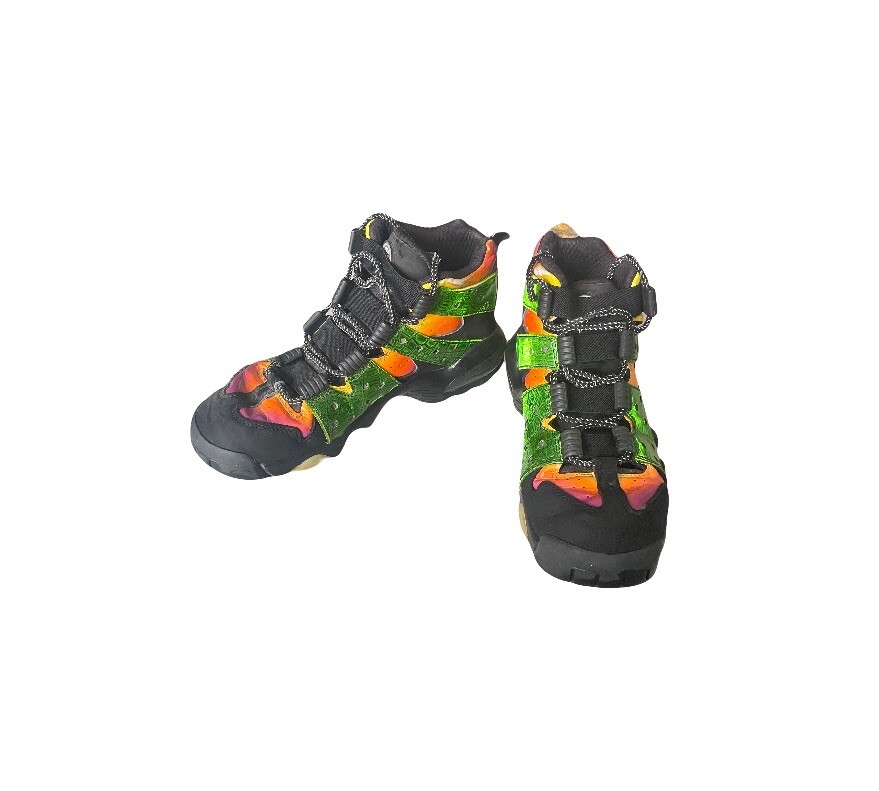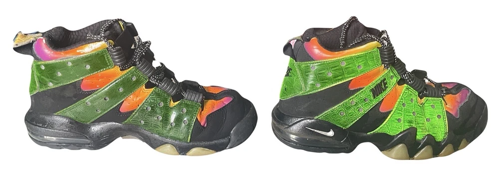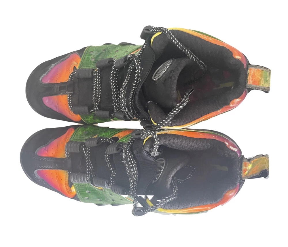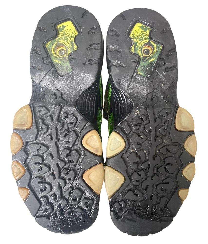 This limited edition Nike Air Max2 sneaker, designed with a colorful Godzilla pattern, is the perfect addition to any shoe collection. The mid-top silhouette, with a lace-up closure, provides a standard shoe width and a comfortable fit for any occasion, whether it's activewear, casual or workwear. The outsole material is made up of leather, vinyl, and unknown materials, while the upper material is vinyl. The shoe is perfect for winter, summer, fall and spring seasons. It’s also suitable for various activities, including basketball, running, tennis, yoga, and more. This pair of Nike Air Max2 sneakers, released in 2015, is a must-have for any sneaker enthusiast. Condition: Pre-owned with moderate wear. See photos for some wear, but not all wear is shown in photos. Partial scuffs, marks with chafing on fabric in areas. Shoelaces have wear and are somewhat coming apart. Inside bottoms feel fine. They could easily be worn by a male or a female. Since they are pre-worn, new foot inserts are recommended (not required or included) so that they can better fit your own feet. Tag: US: 7Y UK: 6 EUR: 40 06/10/15 821923-001 08/20/15 MADE IN INDONESIA UPC: 00091208182865