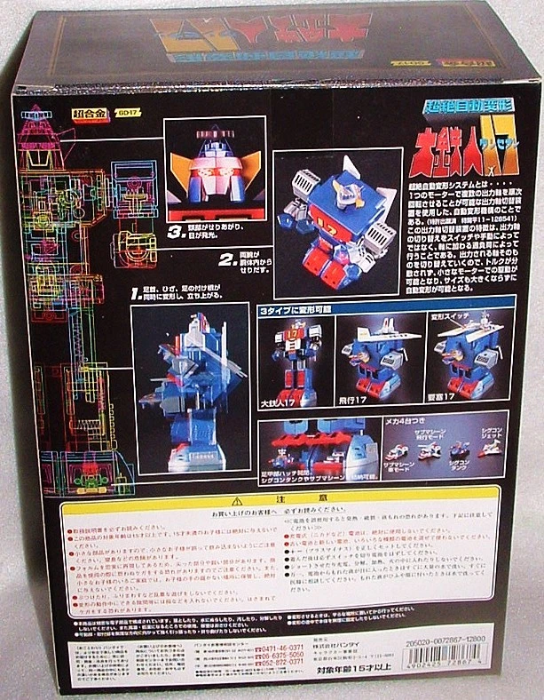 HOT FLASH!!! DAITETSUJIN 17, SHOGUN WARRIOR, 1970's, JAPANESE SCI-FI TV AND MOVIE FANS AND, JAPANESE BATTERY-OP ROBOT & MONSTER DIECAST TOY FIGURE COLLECTORS CHECK THIS OUT! MINT, ORIGINAL, NEW OLD STOCK FROM THE AWESOME DIECAST MAKERS OF THE BANDAI JAPAN!!!!! THIS IS THE UNBELIEVABLE, AWESOME BATTERY-OPERATED, TRANSFORMING!!! 9 INCH TALL LIGHT-UP SHOGUN WARRIOR "DAITETSUJIN-17"!!!, FEATURING ALL THE INCREDIBLY COOL ACCESSORIES ALONG WITH AUTOMATIC, BATTERY-OPERATED SELF-TRANSFORMABILITY!!!!!!!!!!!!!!!!!!!! THE DAITETSUJIN ROBOT TRANSFORMS INTO BASE MODE AT THE PUSH OF A BUTTON, PUSH IT AGAIN AND HE TRANSFORMS BACK --- ALL BY HIMSELF!!!!!!!!!!!!! HIS ARMS ROTATE, HE BENDS FORWARD, KNEES BEND, AND SQUATS INTO PLACE. UPON RETURNING TO UPRIGHT ROBOTIC MODE, HIS HEAD RISES TO REVEAL FLASHING LIT EYES! THIS TOY IS SO COOL IT'S IMPOSSIBLE - THERE HAS NEVER BEEN ANOTHER ONE LIKE IT -- EVER!!! THIS IS PROBABLY BECAUSE THE DESIGN AND ENGINEERING OF IT ARE SO COMPLEX THAT VERY OFTEN FROM NEW, THEY DON'T WORK, OR GET STUCK! I TRIED IT ONCE, NEW OUT OF THE BOX, AND IT WORKED PERFECTLY BUT I WILL NOT GUARANTEE IT WILL WORK AGAIN!!! IT MAY WORK 100 TIMES OR NEVER AGAIN - BUT YOU HAVE MY ABSOLUTE WORD THAT IT WORKED WHEN I TESTED IT TODAY!!! I HAVE A 100% RATING AND OVER 7,700 +FBs, AND HAVE SOLD SUPERB JAPANESE CHARACTER TOYS FOR OVER 25 YEARS - WORLDWIDE!!! THIS AWESOME TOY WILL DISPLAY WITH THE GREATEST ROBOTS EVER MADE, AND MAY OUT-PERFORM ALL OF THEM, BUT PLEASE ONLY BUY IF YOU ABSOLUTELY UNDERSTAND THE RISK THAT IT COULD GET STUCK AT ANYTIME AND NOT WORK AGAIN - I WILL NOT ACCEPT ANY RETURNS!!! FROM ONE OF THE COOLEST OF ALL JAPANESE ROBOT TOY LINES EVER - "SHO-GUN WARRIORS"! THIS IS A MARVEL OF CREATIVE GENIUS, IMAGINATION AND ENGINEERING AND IT IS UNIQUE IN ALL OF TOY-COLLECTING - AMONG THE BEST TOYS EVER (EXCEPT FOR ITS FRAGILITY AND FALLIBILITY)! MINT, NEW IN THE ORIGINAL ART BOX (see photos) WITH ALL ACCESSORIES! - FROM THE 1970's JAPANESE TV SHOW, NEVER PREVIOUSLY SOLD RETAIL OR PLAYED WITH, NEVER REMOVED FROM BOX BEFORE PHOTO-ING AND TESTING FOR THIS AUCTION!!!! AND WITH ALL ACCESSORIES! PLEASE NOTE : This is a very special and unique toy. I have been selling Japanese character toys worldwide for 27 years and this is one of the most unusual and unique I have ever come across. I have bought and sold 1,000's of Japanese character toys but this one is an aggregate of features unlike any other I have seen. It combines a large die-cast and plastic figure with battery-operated and light-up and automized functions and even has accessories AND is a beautifully accurate representation of the character! BUT!!! IT QUITE PROBLEMATIC! This toy is representative of Bandai's marked failure to make properly solid and hi-quality functioning batt/op toys! Indeed, they are terrible at batt/op toy design! And, for that reason this toy is EVEN RARER than it would have been to begin with owing to the fact that 1/3 to 1/2 of them were malfunctioning right from the factory! This toy may not seem an inexpensive purchase but it is offered at such a LOW price precisely because it is guaranteed to fail in time. Maybe the first time you try it , maybe later on but if it is played with, it will certainly cease to function properly! If this was not true I would be asking over $1,000. for this toy. THIS IS A TOY FOR A PURE COLLECTOR! ONE WHO WANTS IT FOR ITS DESIGN, BEAUTY AND CONCEPTION AS ALMOST A WORK OF ART IN THE PANTHEON OF JAPANESE CHARACTER TOY-MAKING! IT IS NOT FOR THE AVERAGE COLLECTOR! SO IF YOU ARE THE TYPE OF RARE COLLECTOR WHO CAN APPRECIATE THE EXCEPTIONAL COOL AND RARITY OF THIS TOY AND THE ABSOLUTE DRAWBACK OF OWNING A TRAGICALLY FLAWED IF BRILLIANT TOY, REMEMBER, YOU HAVE BEEN WARNED. I ONLY GUARANTEE THAT IT WILL FAIL IF NOT SOONER THAN LATER - ONLY PURCHASE WITH THAT IN MIND. IF YOU CAN APPRECIATE THIS, DON'T MISS IT!! THIS IS YOUR CHANCE TO GET ONE, AND, AT A GREAT PRICE. YIPPEEE! (I HAVE MANY VINYLS & DIECASTS FROM JAPAN THAT ARE AWESOME, UP ON AUCTION TOO - LOOK FOR THEM - if you win others you can combine them for shipping and SAVE $ !!!!!). OFFERED HERE AT A REALLY LOW PRICE!!! WINNER PAYS WITH PAYPAL or, you may email me BEFORE bidding for other payment options, WINNER MUST SEND PAYMENT WITHIN 2 DAYS.