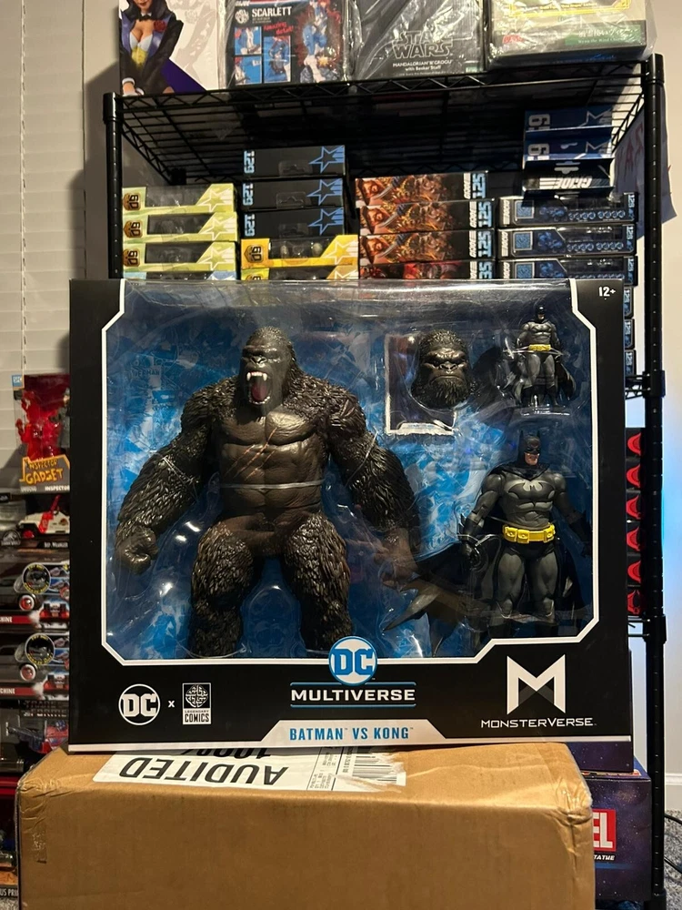 π¦π¦ DC Monsterverse Justice League vs. Godzilla & Kong: Batman vs. Kong Figure Set π’ Product Description: The ultimate crossover event is here as DC's greatest heroes collide with Legendaryβs Monsterverse in Justice League vs. Godzilla vs. Kong ! As Clark Kent prepares for a night off with Lois Lane , the entire city trembles under the massive footsteps of Godzilla emerging from the bay! Meanwhile, what began as a routine battle between the Justice League and the Legion of Doom takes a catastrophic turn , breaching the barrier between worlds. Now, Batman must face off against Kong , the legendary Titan of Skull Island , in a fight for survival! This 7-inch scale figure set from McFarlane Toys features highly detailed sculpts, Ultra Articulation (22 points of movement) for dynamic posing, and an exclusive art card featuring Batman vs. Kong artwork . Whether you're a DC fan, a Monsterverse enthusiast, or both , this collectorβs set is a must-have for your display! π Product Features: β 7-inch scale (17.78 cm) β Perfectly proportioned for epic battle scenes β Made of Plastic β Durable and highly detailed construction β Based on Justice League vs. Godzilla vs. Kong β A groundbreaking DC crossover event β Ultra Articulation (22 Points of Movement) β Dynamic posing for ultimate battle stances β Highly Detailed Sculpt β Faithfully recreates Kongβs monstrous might and Batmanβs armored resilience π¦ Box Contents: π¦ Kong Figure π Alternate Head Piece for Kong π¦ Batman Figure π¦ΈβοΈ Miniature Batman Figure (for scale comparison & scene recreation!) ποΈ Multipack Base π΄ Collectible Art Card (Featuring Batman vs. Kong Artwork & Character Bio) π₯ Why Buy From Us? β In Stock & Ready to Ship! No waitingβyour order is processed immediately. π Super Fast Shipping! Orders placed by 3:30 PM EST ship the same business day! We even ship on Saturdays until 11:00 AM EST! π¦ Mint Condition Guaranteed! Carefully packaged to ensure it arrives in perfect shape . π Worldwide Shipping! No matter where you are, we deliver. π° Combined Shipping Available! Buy two or more items , and you only pay for shipping once! π₯ "Titans clash, worlds collideβwho will stand victorious?" Add the Batman vs. Kong Figure Set to your collection today and witness an unparalleled battle between hero and monster! π¦π¦π₯