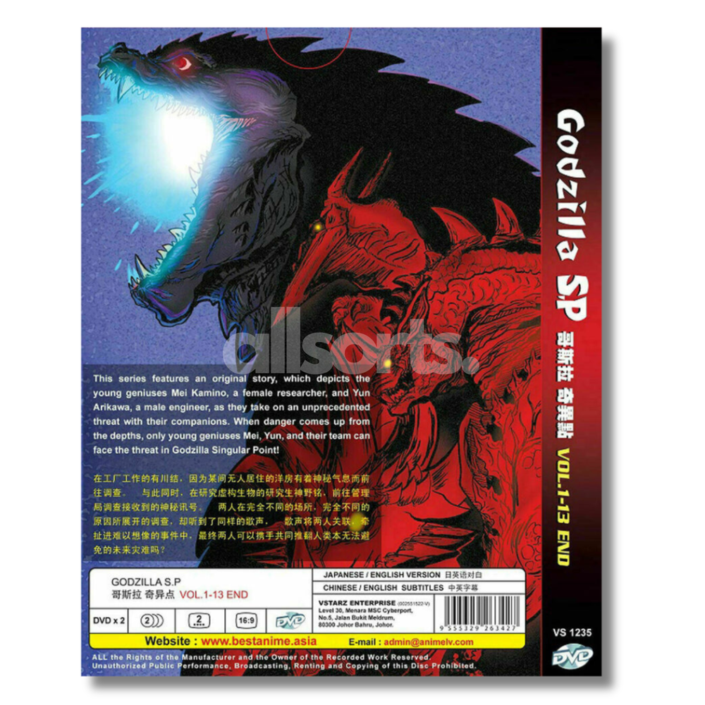 Free eBay listing template designed by dewiso.com DVD ANIME GODZILLA SINGULAR POINT SP (EP. 1-13 END) ALL REGION ENGLISH DUBBED Product Information: Version Audio: Japanese / English Subtitle: English / Chinese Condition: Authentic Brand NEW, Original Factory Sealed. Region: ALL Region / Region Free No of Disc: DVD 2 Pieces Synopsis: This series features an original story, which depicts the young geniuses Kamino, a female researcher, and Yun Arikawa, a male engineer, as they take on unprecedented threat with their companions. When danger comes up from the depths, only young geniuses Mei, Yun and their team can face the threat in Godzilla Singular Point!. Begins in Japan, in the year 2030. Yun Arikawa and Haberu Katō, two workers at the “do-it-all” Otaki Factory, are hired to investigate strange power fluctuations at an abandoned mansion. They find a hidden radio that's picking up a repeating broadcast, which Yun identifies as an old Indian folk song, and trace it to a radio-monitoring station called Misakioku. Meanwhile, graduate student Mei Kamino is brought in to investigate a strange alarm at Misakioku, and discovers that the alarm is connected to the same broadcast. Mei is later contacted online by a copy of Naratake, a popular AI created by Yun, which she renames "Pelops II". Yun and Haberu’s boss, eccentric scientist Goro Otaki, theorizes that Misakioku and the broadcast are part of SETI and are connected to alien activity. Gorō publicly unveils his newest creation, a giant robot called Jet Jaguar, at a local festival, but the event is thrown into chaos when a pterosaur-like monster called Rodan suddenly appears. Meanwhile, it's revealed that the secret basement of Misakioku houses the skeleton of a giant creature. Contact us We can be contacted at any time through eBay messages if you have any questions, comments or product requests. We will respond to you within 24 hours and do our best to help you out! We encourage our customers to contact us with any questions or concerns! We'd like to be sure you are completely satisfied with your purchase. Payment Currently, we accept payment through eBay-managed payment (Credit Card, PayPal, Google Pay, Apple Pay) Shipping All products are free shipping. The products will be shipped from United States. Will usually ship within 3 business days of receiving cleared payment.. Your goods will be shipped with a valid tracking number. All products are packed, and layered with bubble wrap to reduce damages during shipment delivery. Estimate delivery is between 3 to 5 business days. Returns If you have any problem with the order, do contact us via eBay message. We are glad to assist you and solve the problem as soon as possible. Items can be returned within 30 days in a good condition.