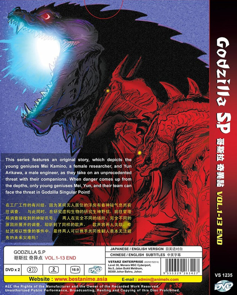 Godzilla S.P Vol. 1 - 13 End ( English Dubbed ) DESCRIPTION No Of Disc : 1 Disc Version : Japanese / English Subtitles : Chinese / English Format : DVD / NTSC & All Region Code (16:9) Publisher : Malaysia Original Hologram Sticker Story : This series features an original story, which depicts the young geniuses Mei Kamino, a female researcher, and Yun Arikawa, a male engineer, as they take on an unprecedented threat with their companions. When danger comes up from the depths, only young geniuses Mei, Yun, and their team can face the threat in Godzilla Singular Point! Payment We Only Accept Paypal Shipping Free Register For Track Your Shipment Delivery 10 - 18 Days Without Sat & Sun Working Days We Selling All Original Product And SIRIM Malaysia Approve By Gov Department Return 14 Days No Question Ask Return . Buyer Pay Return Postage. Contact Us Please E-Mail Me If You Got Other Questions Feedback Should Any Problems Arise, Please E-Mail Let Us Know & We Will Do Our To Correct Any Problems Thanks for Shopping Have A Nice Days