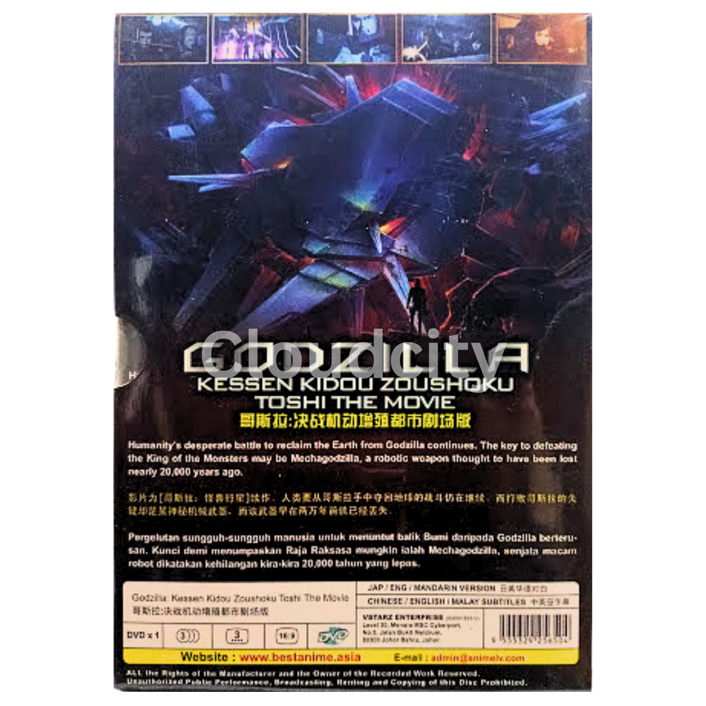 DVD Godzilla 2: Kessen Kidou Zoushoku Toshi(2018) Eng Dub & Sub All Region Anime Synopsis: By the advent of the 21st century, much of humanity was dead, having been trampled over by a new master, Godzilla. A select few among mankind took to the stars in a spacefaring vessel called the Aratrum in search of "the promised land," the planet Tau-e that could sustain human life. But the migration plan fails, and the remnants of the human race decide to return to Earth. But the distortions in space-time and the distance traveled means that mankind is returning to a completely changed Earth some 20,000 years later. The returnees, led by hero Haruo, prepare to take the fight to Godzilla based on a strategy that has been 20 years in the making. Carried out with the help of two alien species, the Exif and the Bilusaludo, the humans succeed in defeating Godzilla in a costly battle to the death. But the victory is short-lived. Rising from the depths of the planet is a new breed of monster, dubbed "Godzilla Earth." Evolving for 20,000 years, the creature stands 300 meters high, weighs over 100,000 tons and wields such overwhelmingly destructive power that Haruo and company have no choice but to run for their lives. Coming to Haruo's rescue, however, is Miana, a member of an aboriginal tribe called the Houtua. They are the first humanoid people the returnees have encountered. Could they descend from humans? "Our tribal god was destroyed by Godzilla. All that we have left are these eggs. Anyone who has tried to fight or resist him has been drowned in fire," the tribespeople say to Haruo, who responds with: "This is our last hope of recovering our home." Meanwhile, Bilusaludo commander, Galu-gu is elated to discover that the Houtua tribe's arrowheads are made of a nanometal or a self-sustaining metal. It had been developed in the 21st century as an "anti-Godzilla" killer weapon deployed at their decisive battle fought at the foot of Mt. Fuji, but had been destroyed before it could be activated in the form of a "Mecha-Godzilla." The nanometal was its base substance, and proof that the manufacturing plant can still be used.