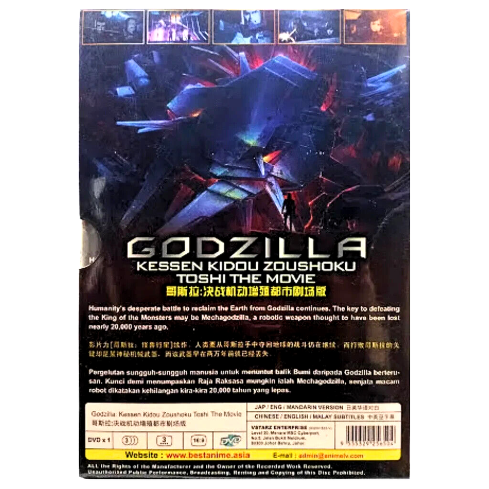 Godzilla Movie 2: Kessen Kidou Zoushoku Toshi (2018) Godzilla: City on the Edge of Battle English Audio Dubbed Version Optional: Japanese Audio with English Subtitle ALL Region / Region Free ~ FREE INTERNATIONAL SHIPPING ~ Product Description Weight : 161g SKU : *SKCT-210923528* Condition : NEW, Original & Licensed Item Format : DVD/NTSC, Widescreen (16:9) Region Code : ALL Region (Able to play on DVD Players throughout the World) No. of Disc : 1 DVD Language : Japanese/ English /Mandarin Subtitle : English /Chinese/Malay Synopsis By the 21st century, most of humanity had been wiped out by Godzilla. A few survivors escaped into space on a ship called the Aratrum, searching for a new home on planet Tau-e. However, their plan fails, and they return to Earth, only to find that 20,000 years have passed, and the planet has drastically changed. Led by Haruo, the humans prepare to fight Godzilla using a strategy developed over 20 years, with help from two alien species, the Exif and Bilusaludo. After a hard-fought battle, they manage to defeat Godzilla. However, their victory is short-lived, as a new, more powerful creature called "Godzilla Earth" emerges. This Godzilla, having evolved for 20,000 years, stands 300 meters tall, weighs over 100,000 tons, and is nearly unstoppable. Haruo and his team are forced to flee. Miana, a member of an aboriginal tribe called the Houtua, rescues Haruo. The Houtua are the first humanoid beings the humans have encountered, and Haruo wonders if they are descendants of humans. The tribe explains that their god was destroyed by Godzilla, and all they have left are sacred eggs. Anyone who tried to resist Godzilla was destroyed by fire. Haruo sees this as their last hope of reclaiming Earth. Meanwhile, Bilusaludo commander Galu-gu is excited to learn that the Houtua tribe's arrowheads are made of a special nanometal. This material was developed in the 21st century as part of a weapon against Godzilla but was destroyed before it could be used. The discovery suggests that the manufacturing plant, which was meant to create a "Mecha-Godzilla," might still be functional. ----------------------------------------------------------------------------------------------------------------------------------------------------------------------- Payment Currently, we accept payment through eBay-managed payment. Selling Policy Kindly be aware that items will only be dispatched upon receipt of full payment. Payment must be completed or arranged within 5 days of your purchase. An unpaid item dispute will be initiated thereafter. Shipping Policy We offer FREE SHIPPING Worldwide The items will be sent via SingPost from Malaysia, and our processing time is typically 1-3 business days . You can expect your goods to be shipped with a valid tracking number, and we take care to package all products securely with bubble wrap to minimize any potential damage during transit. The estimated delivery time from 11 to 23 business days . Returns Policy If you encounter any issues with your order, please reach out to us via eBay message. We are more than willing to provide assistance and resolve the problem promptly. Should you need to return items, they must be in good condition and can be done so within a 30-day period. Others Note: The item price and shipping charges do not cover import duties, taxes, or additional fees. Please keep in mind that these customs import duties and taxes are the responsibility of the buyer. Contact us Please don't hesitate to reach out if you have any questions. We will respond within 24 hours. Feedback We really value your feedback! If you're happy with our product or service, please take a moment to leave us some great feedback. Thank you very much!