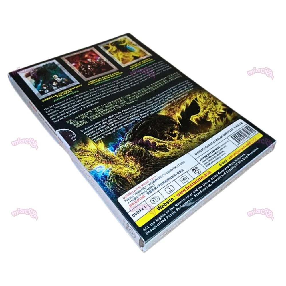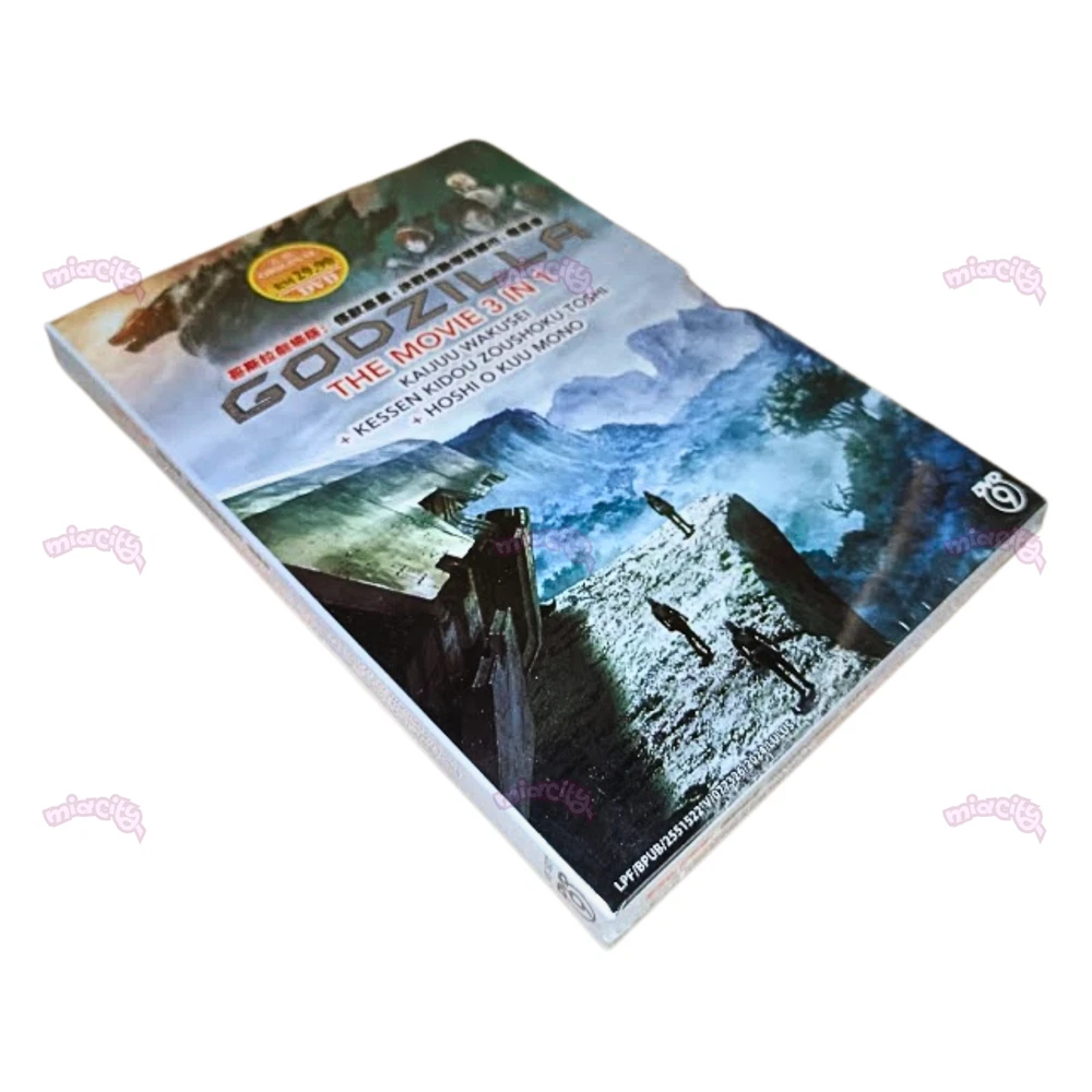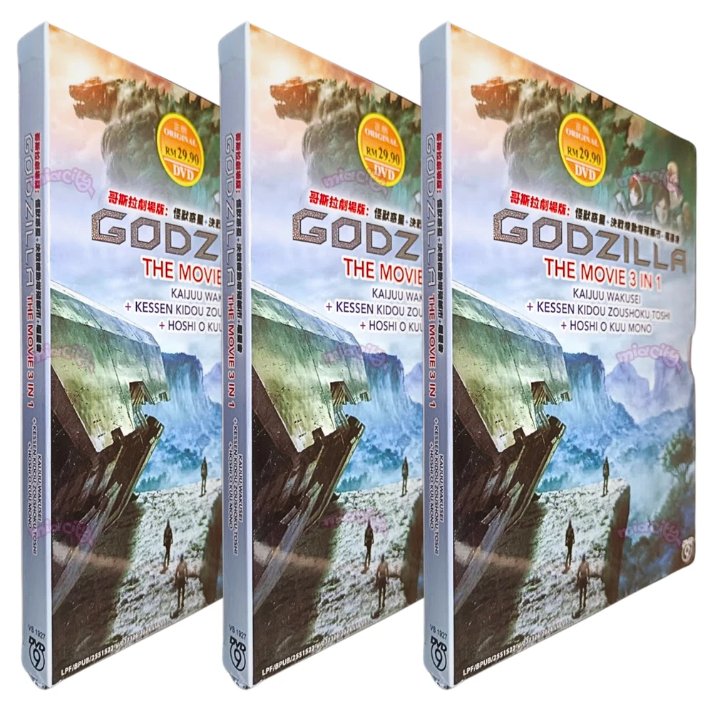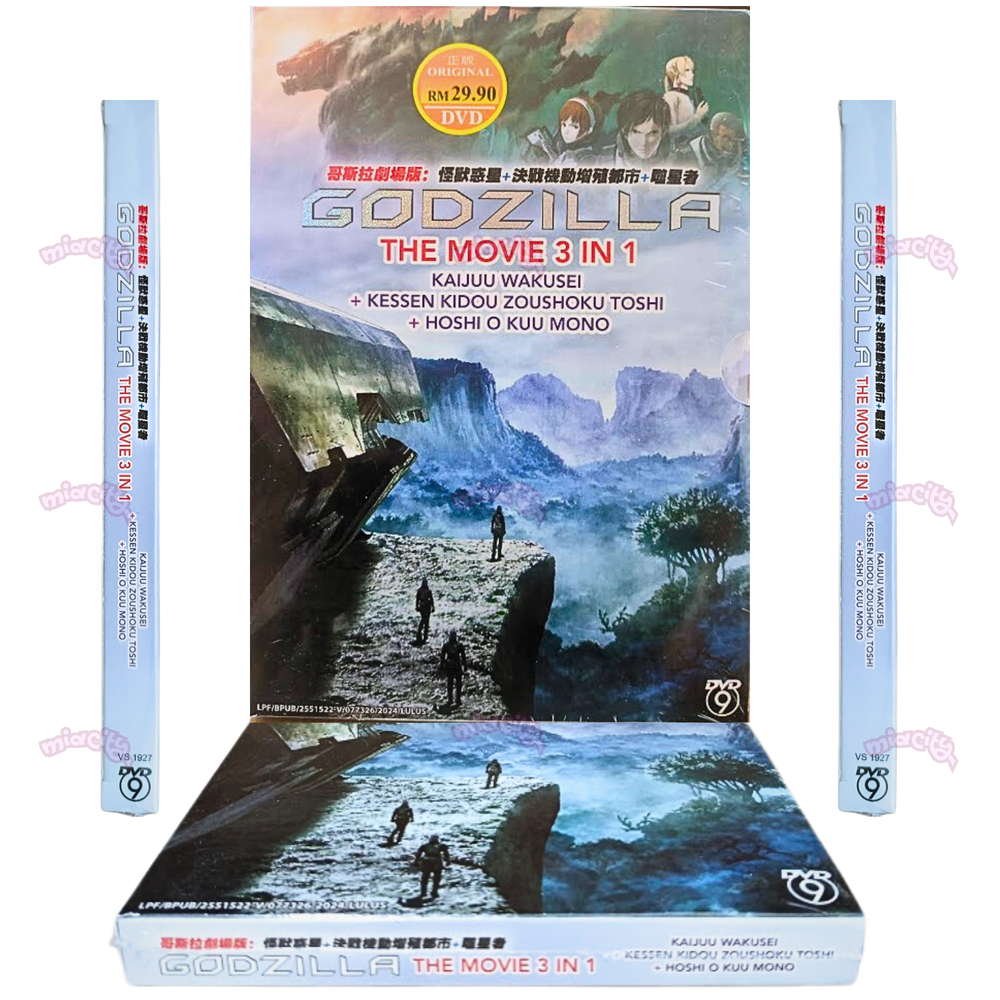 Godzilla The Movie 3 in 1: Kaijuu Wakusei / Kessen Kidou Zoushoku Toshi / Hoshi wo Kuu Mono - *English Dubbed* Product Description: Number of Disc. : 1 DVD Episodes : 3 Movies Audio (Dialogue): English / Japanese Subtitled : English / Chinese / Malay DVD Region Code : Region Free, All (NTSC) Synopsis: Godzilla 1: Kaijuu Wakusei (Planet of the Monsters): Twenty thousand years after the fall of humanity, Earth succumbed to legions of ravenous creatures who now freely roam the planet. Far away in the depths of space, the last surviving members of humanity float aimlessly in the same ship they escaped Earth with so many years ago. With the spacecraft running dangerously low on resources, the survivors' leading council must decide on their path forward: should they continue to gamble on finding another Earth-like planet to inhabit, or take to heart an anonymous essay theorizing what may be the only weakness of the "Godzilla," who forced the last remnants of humanity off their home world? The author of the controversial essay is Haruo Sakaki, a man who witnessed the death of his parents to Godzilla at a young age, which has led him to harbor an obsessive hatred for the monster. Now, he spearheads the operation aimed at reclaiming humanity's birthright from the king of monsters and slaying him once and for all. But, alongside humanity, Earth has undergone drastic change since their departure; Godzilla and its numerous spawns may pale in comparison to the darkness lurking within the hearts of this close-knit community of survivors. Godzilla 2: Kessen Kidou Zoushoku Toshi (City on the Edge of Battle): After a desperate battle and many losses, humans finally slay Godzilla—the monster that caused humanity to flee Earth 20 thousand years prior. But the creature Haruo Sakaki's troops killed was not alone; there existed another Godzilla on Earth yet to be defeated. Grievously wounded from the first conflict, Sakaki wakes up in the home of a young girl who is a member of the Houtua tribe. Bearing a shocking resemblance to humans, the Houtua have adapted to survive the changed climate of the planet that had long been abandoned. With most of their resources depleted, the remaining members of Sasaki's special forces struggle with the decision to abandon their mission and their home planet or to fight an improbable battle. Hope is not completely lost however, as the members from the Bilusaludo race of aliens discover remnants of their anti-Godzilla weapon Mechagodzilla. Even with this powerful weapon in their arsenal, victory seems impossible to grasp: Godzilla has spent all this time evolving and preparing to defeat anyone who dares to challenge its superiority. Godzilla 3: Hoshi wo Kuu Mono (The Planet Eater): With the defeat of the Bilusaludo's nanometal city, the destruction of humanity seems inevitable. Worse yet, Captain Haruo Sakaki's refusal to sacrifice his humanity has come under fire from the remaining Bilusaludo troops, who blame him for their defeat. In their darkest moment, the few surviving humans turn to the religion of the Exifs, which promises that devotion is the path to salvation from Godzilla. However, the Exif are not what they seem. As the survivors become more and more zealous in their devotion, Sasaki wonders what exactly the priest Metphies is hiding—especially regarding his relationship with the monster known as Ghidorah.