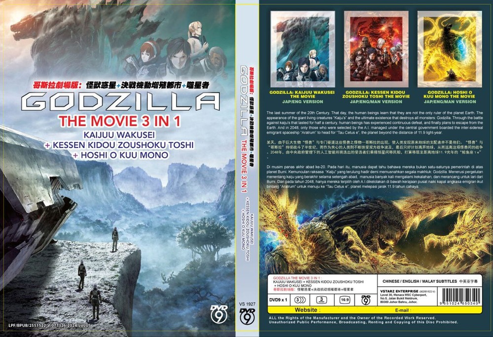 DVD Godzilla The Movie 3in1 Planet Monsters+City Battle+Planet Eater English Dub SYNOPSIS The last summer of the 20th Century. That day, the human beings learn that they are not the only ruler of the planet Earth. The appearance of the giant living creatures “Kaiju's” and the ultimate existence that destroys all monsters: Godzilla. Through the battle against kaiju's that lasted for half a century, human beings has experienced continuous defeat, and finally plans to escape from the Earth. And in 2048, only those who were selected by the A.I. managed under the central government boarded the inter-sidereal emigrant spaceship “Aratrum” to head for “Tau Cetus e”, the planet beyond the distance of 11.9 light-year. However, the environmental condition differences between that of the Earth and Tau e, which they finally arrived after 20 years were far beyond the predicted numbers, and was not an environment considered to be habitable by human beings. The young man on the emigrant ship: Haruo, who saw his parents killed by Godzilla in front of his eyes when he was 4 years old, had only one thing in his mind for 20 years: to return to the Earth and defeat Godzilla. Shut out from the possibility of emigration, as the living environment in the ship deteriorates, the group of “Earth Returnists” led by Haruo became the majority, and determines to head back to Earth through a dangerous long-distance hyperspace navigation. However, the Earth they have returned has already passed the time of 20,000 years, and has become an unknown world with the ecosystem reigned by Godzilla. At the end, will human beings win back the Earth? And what will Haruo see beyond his fate? PAYMENT: We accept payment via eBay managed payment. SHIPPING POLICY: We ship using Economy Shipping from Malaysia which takes 11 to 23 business days to reached customers. We also provide Express Shipping from Malaysia with estimated time arrival up to 7 business days. RETURN: Our policies aligns with eBay’s professional law standards. Buyers covered by the eBay Money Back Guarantee are eligible for refunds in these situations: damaged item, item not matching the description, or wrong item. To initiate a refund, provide evidence of shipping damage and save the packaging. If you no longer want the item, we accept returns as long as it’s in the same condition as when shipped. Refunds will be issued minus the original shipping cost. Return the item within the specified period, with no missing parts or damage to the packaging. Once the item delivered and in satisfactory condition, a refund will be issued within 2 days. Unreasonable circumstances or failure to meet conditions may result in a non-accepted return. OTHERS: Please be aware that any customs fees, import duties, taxes and additional charges should be under buyer responsibility. FEEDBACK: We highly value and appreciate your feedback. Your experience is important to us, and if there any areas where we can improve please let us know before leaving any feedback. Our customers are our top priority, and we take your concerns seriously. We are committed to working together to find resolution that satisfied you. Please contact us through eBay messaging, including your contact information and order number. Thank you for choosing to shop with us.
