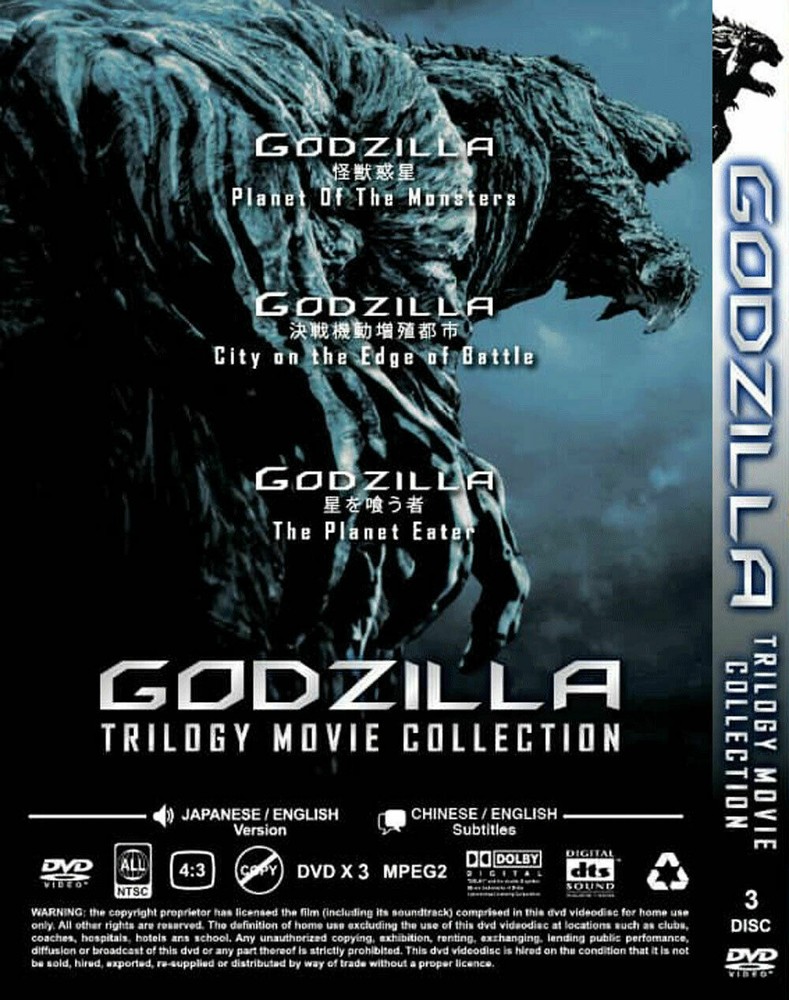 JAPANESE ANIMATION GODZILLA THE MOVIE 1 - 3 (KAIJUU WAKUSEI + KESSEN KIDOU + HOSHI O KUU) * ENGLISH DUBBED * Language : Japanese / English Subtitle : English / Chinese No. of Disc : 3 No. of Episode : 3 Movie Condition : NEW, Original & Licensed ITEM Media Type : NTSC, Widescreen 16 : 9 (Region ALL) Payment & Shipping We Accept PAYPAL Only. Tracking Number Will Be Provided. Free Register Track Your Shipment 10 to 18 Days Without Sat & Sun Working Days. Item Will Be Processed And Ship Within 2 Or 3 Working Day (NOT INCLUDED WEEKED AND PUCBLIC HOLIDAY ). As The Seller, We Are Not Liable For Any EXTRA COST / CHARGE / TAX Imposed By Your Custom Upon Receiving The Package. Return Buyer Pay The Return Postage. 30 Days Returnable. Items Must Be Returned In Perfect Original Condition, Buyer Responsible For Return Shipping Cost Refunds Will Be Arranged Thru PAYPAL . About Feedback Please Contact us to Resolve any bad issue before leaving Neutral or Negative Feedback .